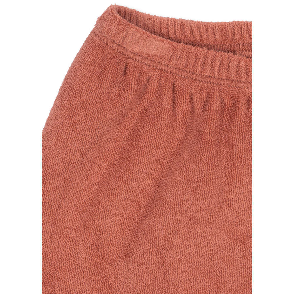 Soft two-piece set with a tee and shorts. Made from organic cotton terry with a fluffy texture, this set is made for warm summer days. The tee has a classic crewneck and a straight fit, and the shorts are designed with an elastic waistband and a short mid-thigh length.