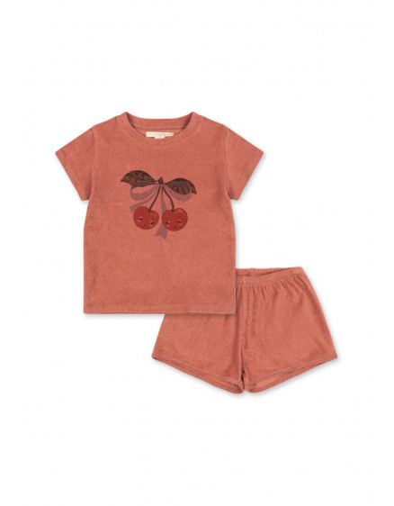 Soft two-piece set with a tee and shorts. Made from organic cotton terry with a fluffy texture, this set is made for warm summer days. The tee has a classic crewneck and a straight fit, and the shorts are designed with an elastic waistband and a short mid-thigh length.