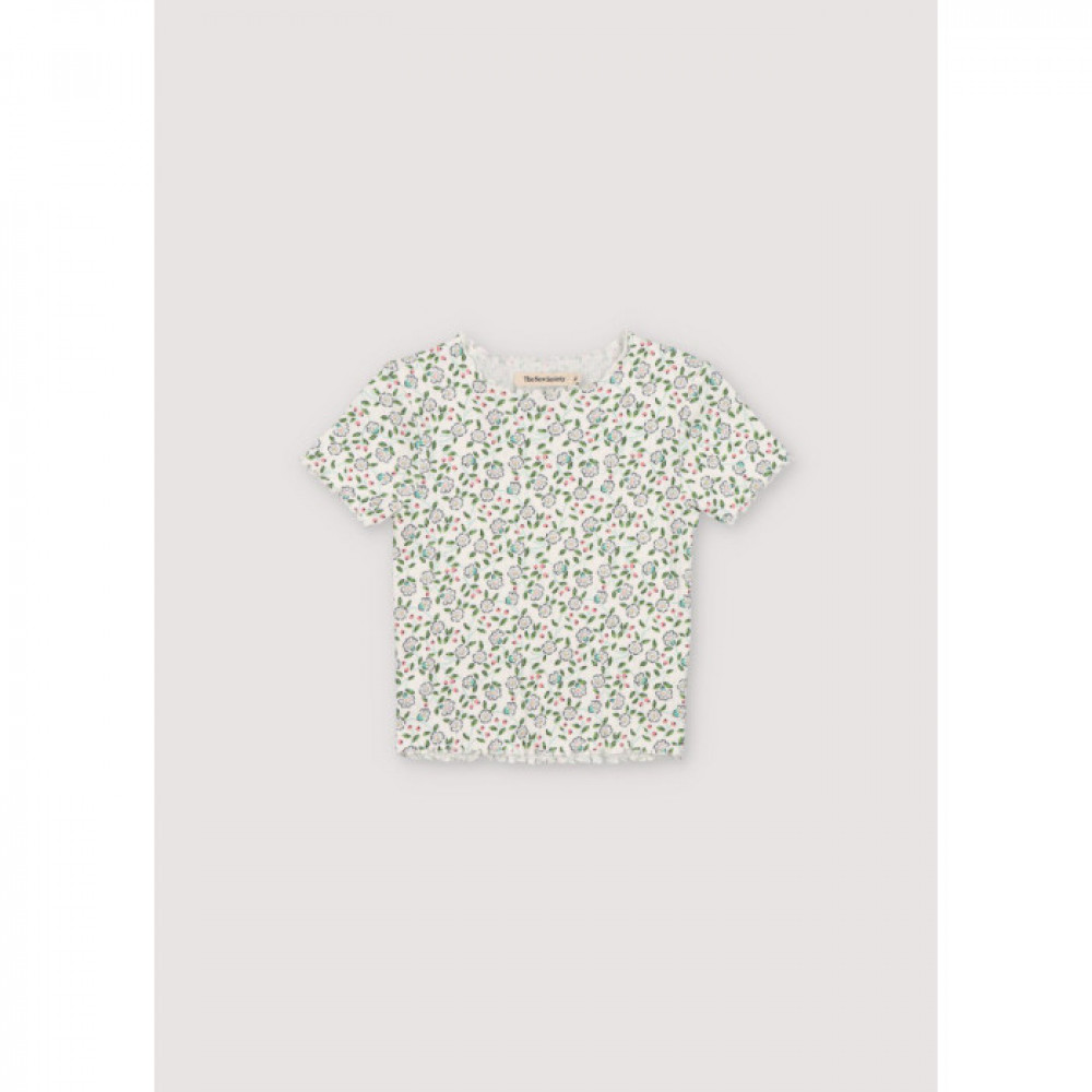 Ribbed t-shirt with short sleeves, ribbed neckline and subtle print. . Perfect for everyday summer style.