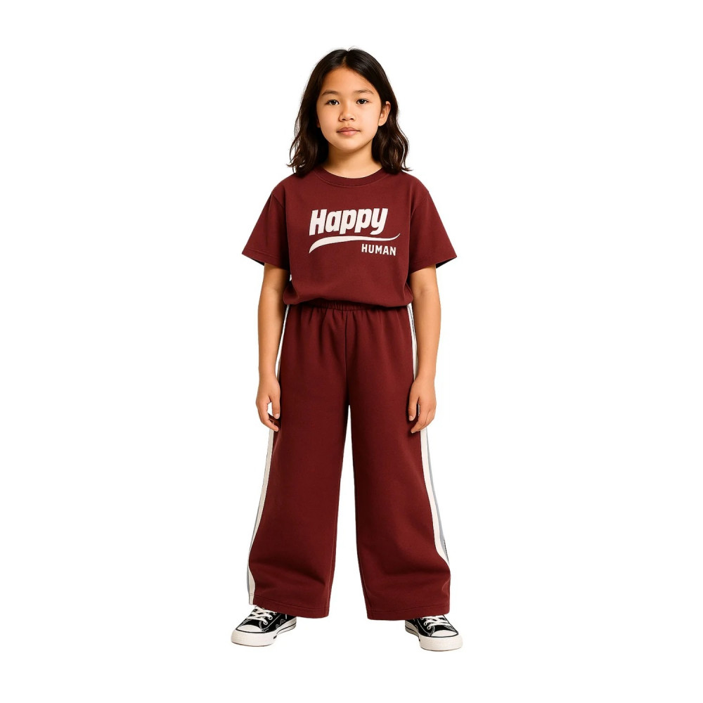 This cheerful port-colored kids' t-shirt features the uplifting "Happy Human" print, perfect for spreading positivity and good vibes. Made from soft, breathable fabric, it offers comfort all day long, whether they’re playing, learning, or just hanging out. This tee is all about embracing happiness and being your true self, making it a great addition to any young one's wardrobe!