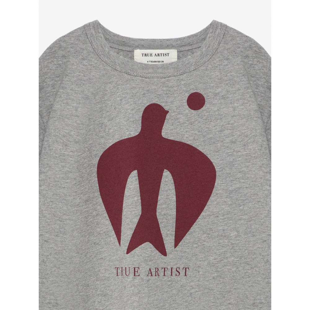 T-shirt nº05 in Melange Grey is made of 100% cotton and has our bird and logo printed on the front. It has a round neck, short sleeves and has a relaxed fit. Made in Portugal.