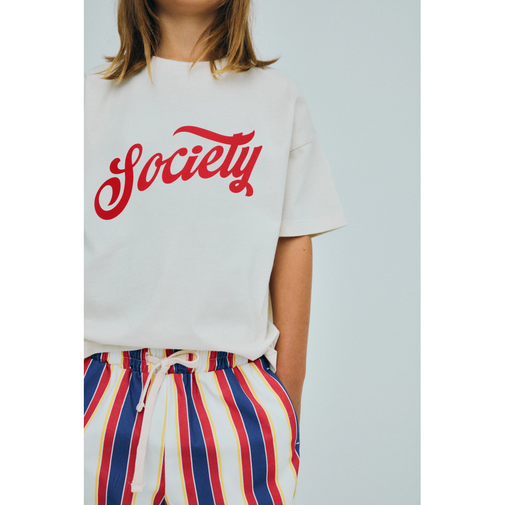 Soft cotton jersey t-shirt featuring a ribbed round neckline and a contrasting print on the front. Perfect for mixing and matching with the rest of the pieces in the collection. Made in Portugal