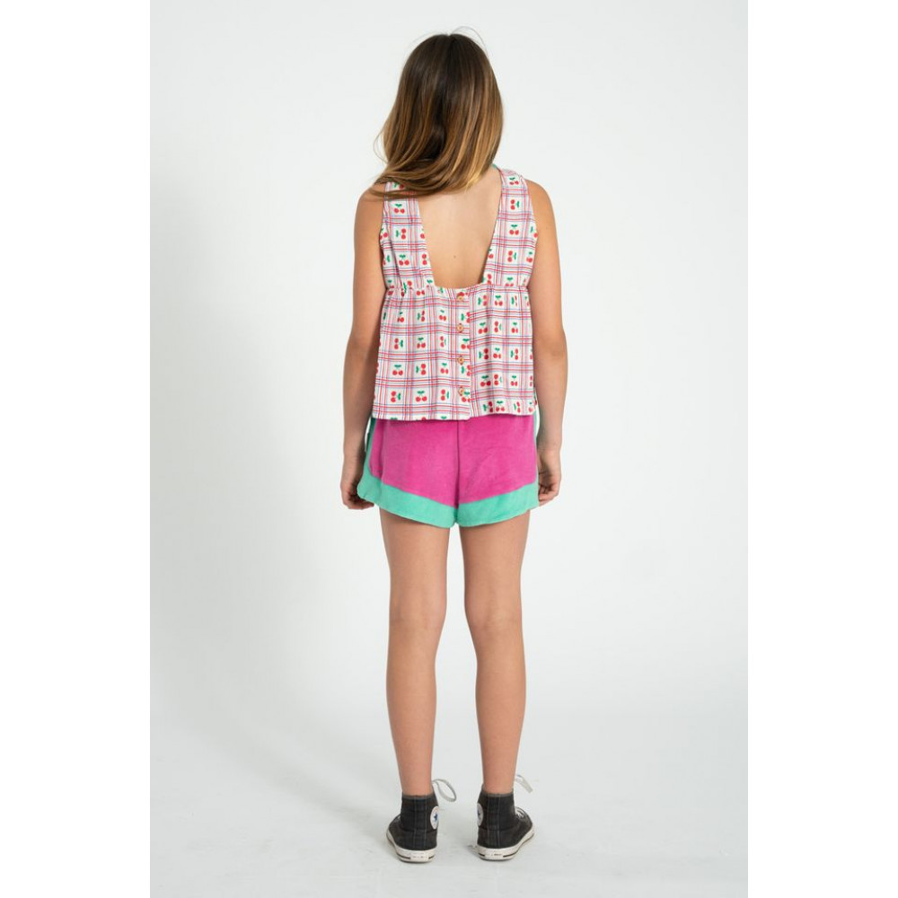 Sleeveless top detailed with square back neckline and wood buttons. Ruffled hem. Wash cold (max 30ºC) . Do not bleach . Do not tumble dry . Iron medium (max 150°C) . Dry clean with any solvent except Trichloroethvlene .
