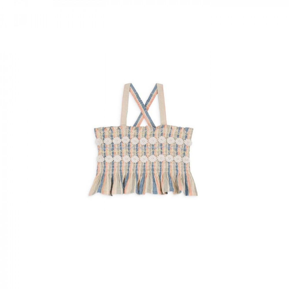 Strappy top with elastic. Cropped silhouette. Decorative details in the form of flowers