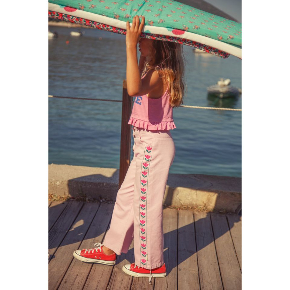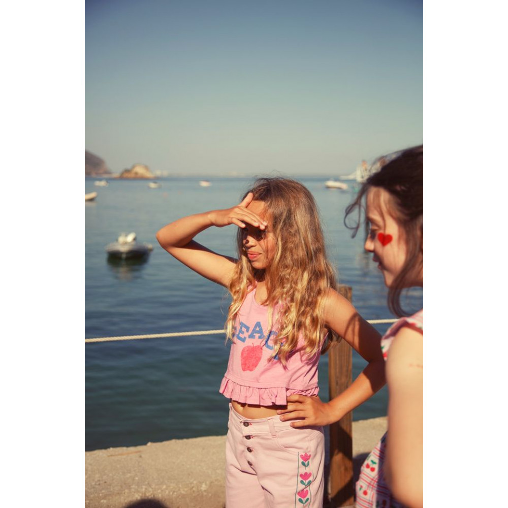 Top in jersey flamé with frills all around the waist. Detailed w/ front print and logo star print on the back. Wash cold (max 30ºC) . Do not bleach . Do not tumble dry . Iron cool (max 110ºC) . Do not dry clean