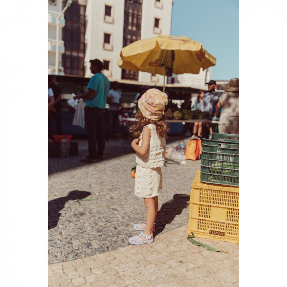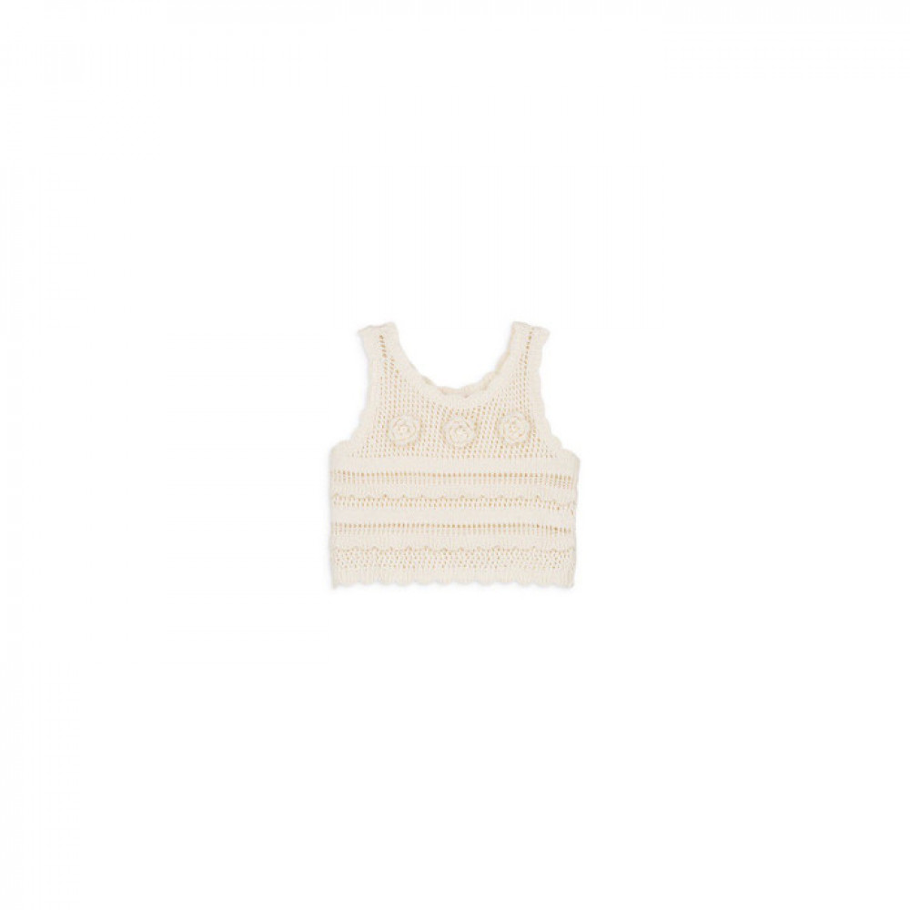 Delicate knitted top made of soft cotton. Cropped silhouette. Decorative knitted details in the form of flowers
