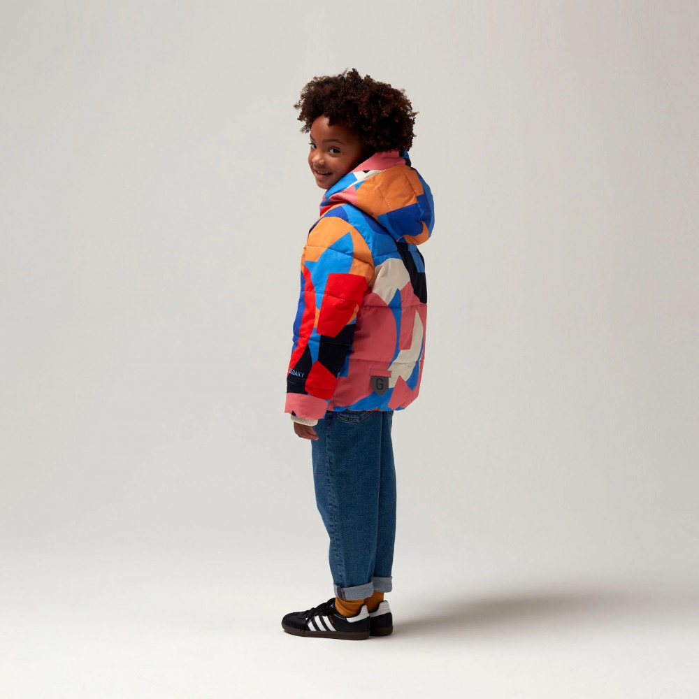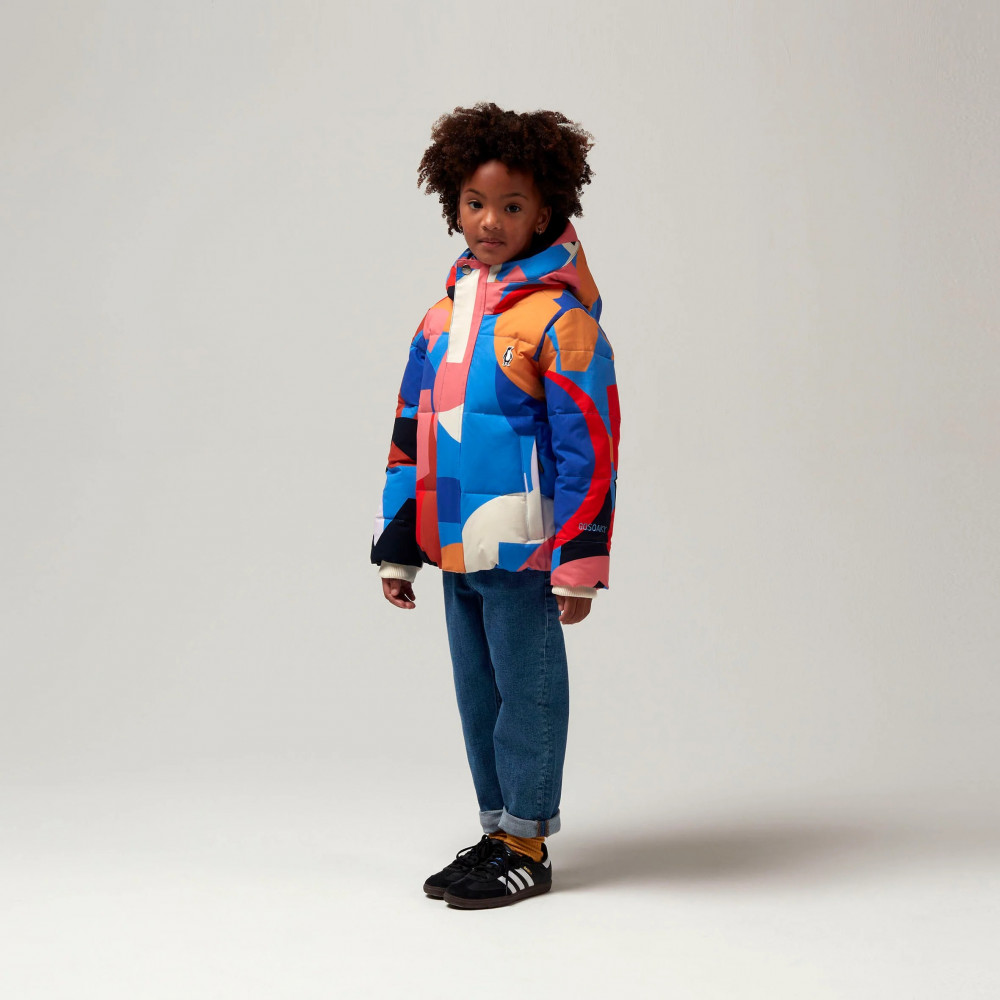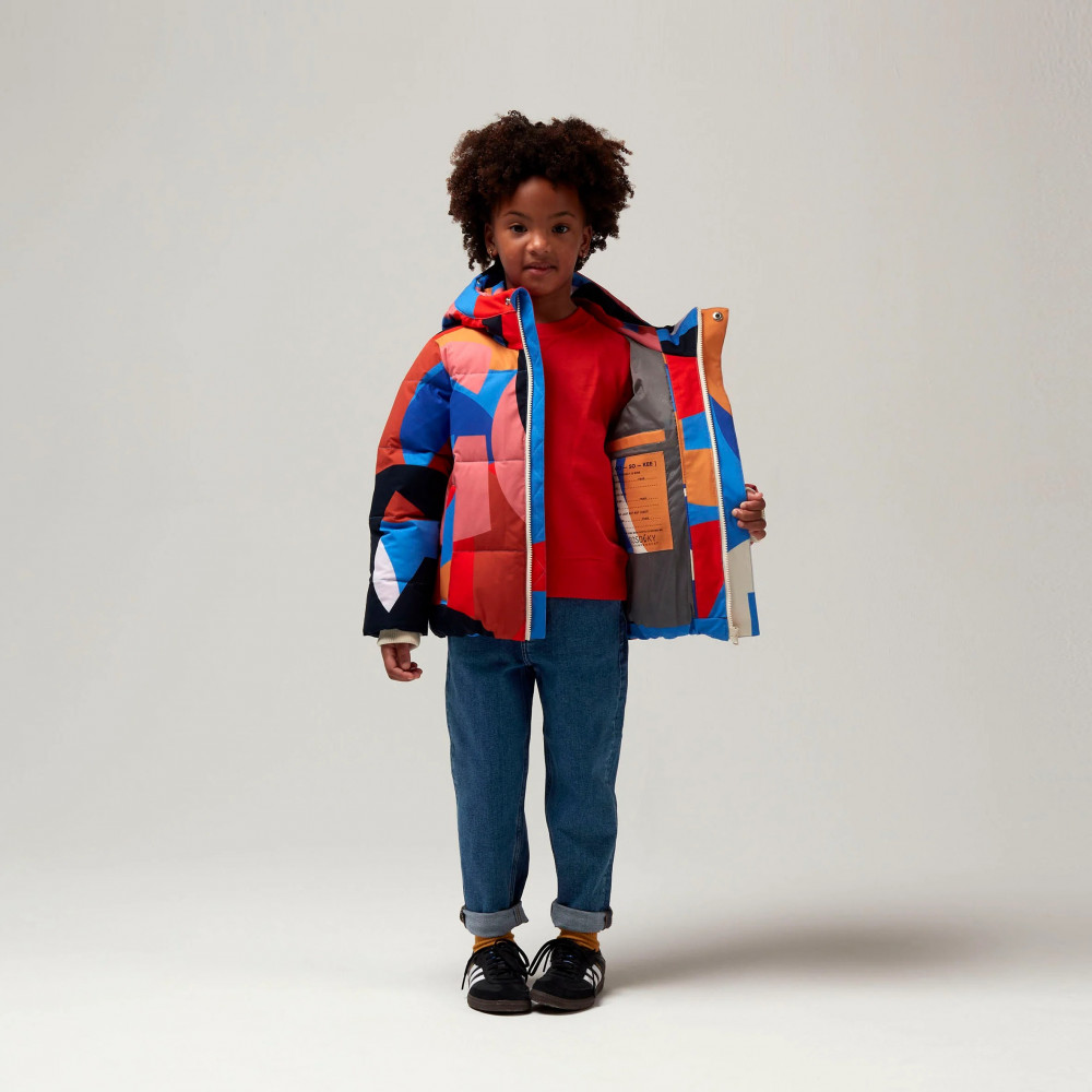 This shorter take on best-seller TIGER EYE is a true winter essential. This short puffer jacket has a classic cut, super warm biodegradable filling and ribbed cuffs. In other words: a real wardrobe staple. Waterproof rating: heavy rainfall 8000mm column pressure Taped seams High performance material Dense Micro Twill made out of recycled yarn Gray green version is made out of waterproof sateen fabric DWR Bionic finish® Eco; the deep water-repellent component used is based on a fluorine free recipe Reflective safety strip in the small pocket at back of garment All our garments are BPA + AZO free and certified with all child safety regulations No animals are used for these products