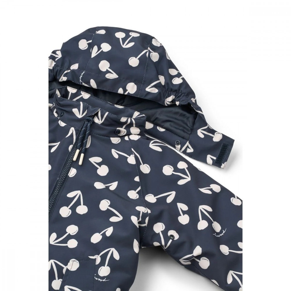 For the cold and snowy winter days, the MADDY padded snowsuit will keep little ones warm and comfortable. The innovative thermo insulation reduces the bulkiness of the suit, so your child can move around and play freely. Warm and lightweight snowsuit with detachable hood Padded with THERMOLITE® EcoMade, a less bulky yet warm alternative to down Shell and lining are crafted from breathable 100% GRS-certified recycled polyester Elastic cuffs and waist at the back for a better fit Waterproof of 12.000 column water pressure Suspenders at the upper body allow the child to take the arms out of the sleeves when warm without taking the suit completely off Fleece lining inside the pockets and adjustable silicone foot straps An all-weather suit for exploring the outdoors