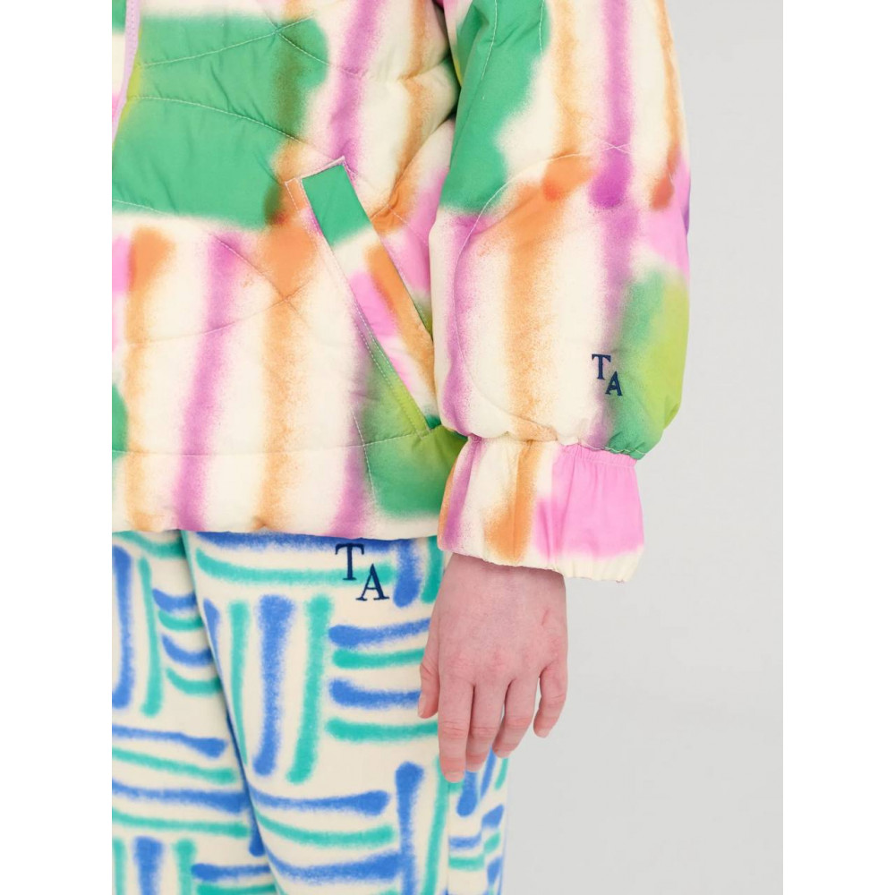 Aerosol Padded Jacket is made of 100% polyamide and it is filled with 100% polyester padding. This all over printed anorak features a unique spray-paint effect print, giving it an edgy, artistic. It is designed with turtle neck collar with a hidden hood, dropped shoulders, front zipper fastening and welt pockets. It has a TA embroidery in contrast color on the edge of the sleeve and a solid lining on the inside made of polyamide. It has a relaxed fit. Made in China.