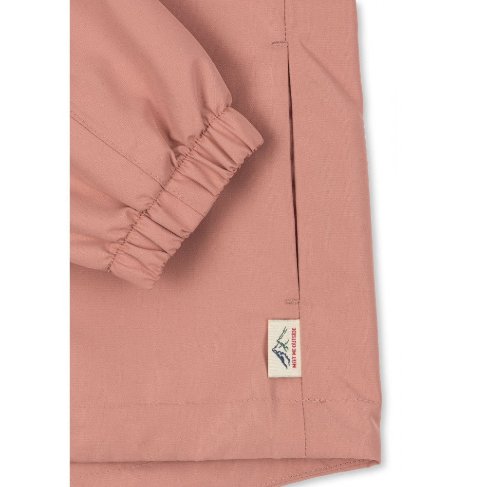 Functional shell jacket in a lightweight performance fabric that offers premium weather protection and insulation. A practical everyday favorite that is easy to bring to daycare, kindergarten or school. Designed with a detachable hood, loop-and-toggle elastic waist feature, elastic wrist cuffs, and soft fleece lining around the neck and in front pockets. Comes in a practical flexi size that can be adjusted to grow with the child, offering room to expand approximately 1.5 size. Technical specifications: Waterproof 10.000 mm Wind-resistant Breathability: 8000 g/m2/24 Taped seams