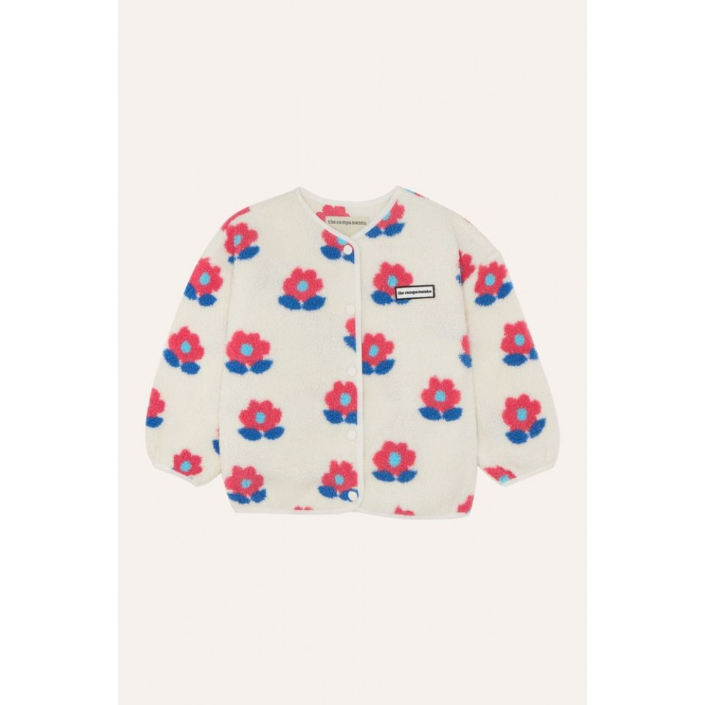 This jacket is the perfect garment to complete the winter looks and stay warm on the coldest days. In ecru teddy with red big flowers all over it. Loose fitting, open in the front with snaps. Made in Portugal