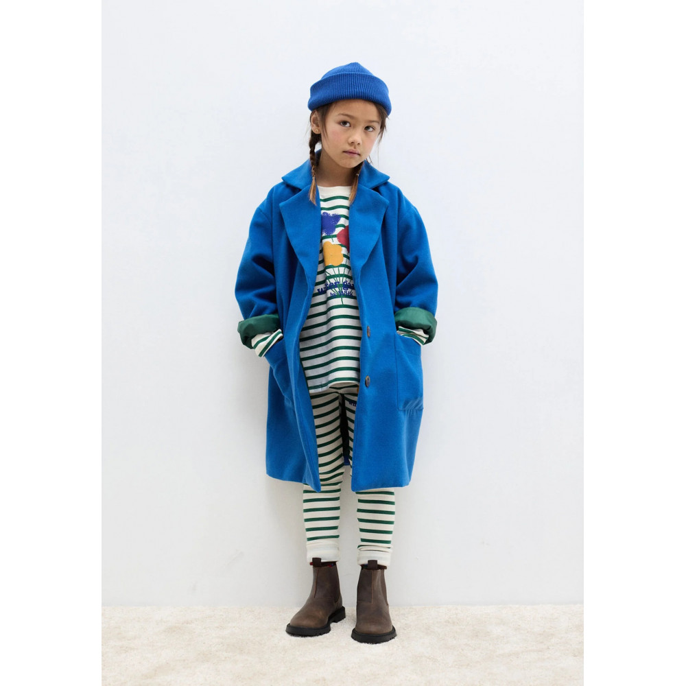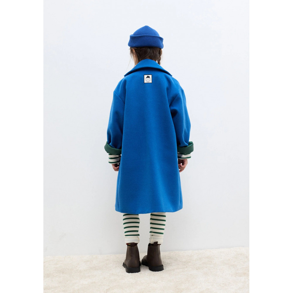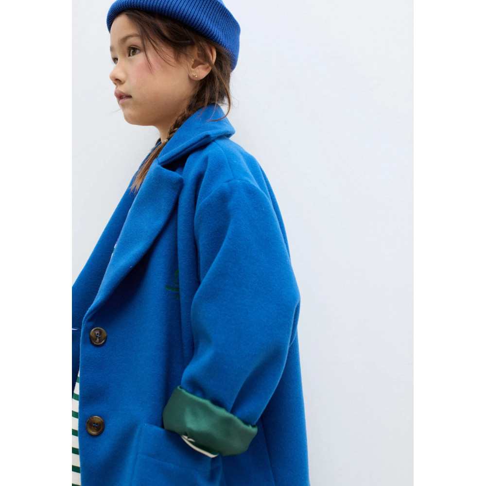 Timeless and refined, this classic blue coat is crafted from premium organic cotton to keep little ones warm and stylish. Featuring a clean silhouette and a subtle embroidered logo on the chest, it’s a versatile piece for every season.