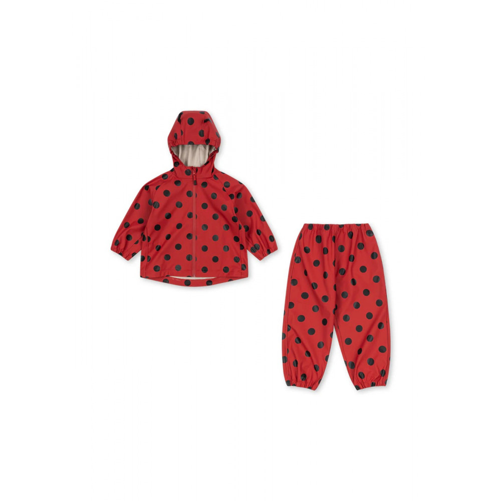 Practical rain set in a lightweight quality that is ideal for kindergarten and daycare wear. The rain set is both wind-resistant and waterproof with practical features like welded seams, elastic waist, and elastic cuffs at hands and ankles that fit over rain boots and gloves. Technical details: - Waterproof: 10.000 mm - Welded seams - Wind resistant