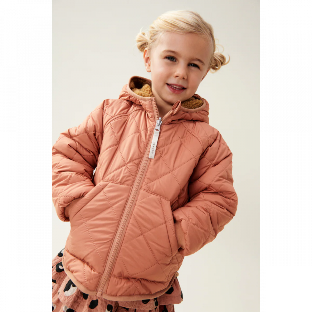 Comfortable, practical and ideal for outdoor play. The hooded JACKSON jacket is made from 100% recycled polyester and has thermal padding and soft pile layer. A versatile jacket for transitional weather to use on its own or as an extra warm layer under rainwear or softshell wear. Practical and cool reversible thermo jacket With soft pile lining and quilted padding This product is made of 100% GRS-certified recycled polyester Hood, zipper closure, and slanting pockets Use on its own or as an extra layer under rainwear or softshell wear Comfortable trans-seasonal style ideal for outdoor play