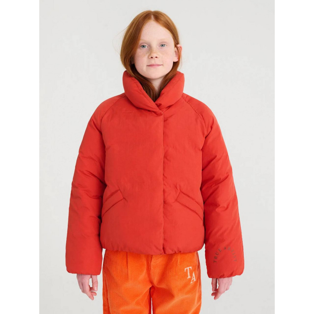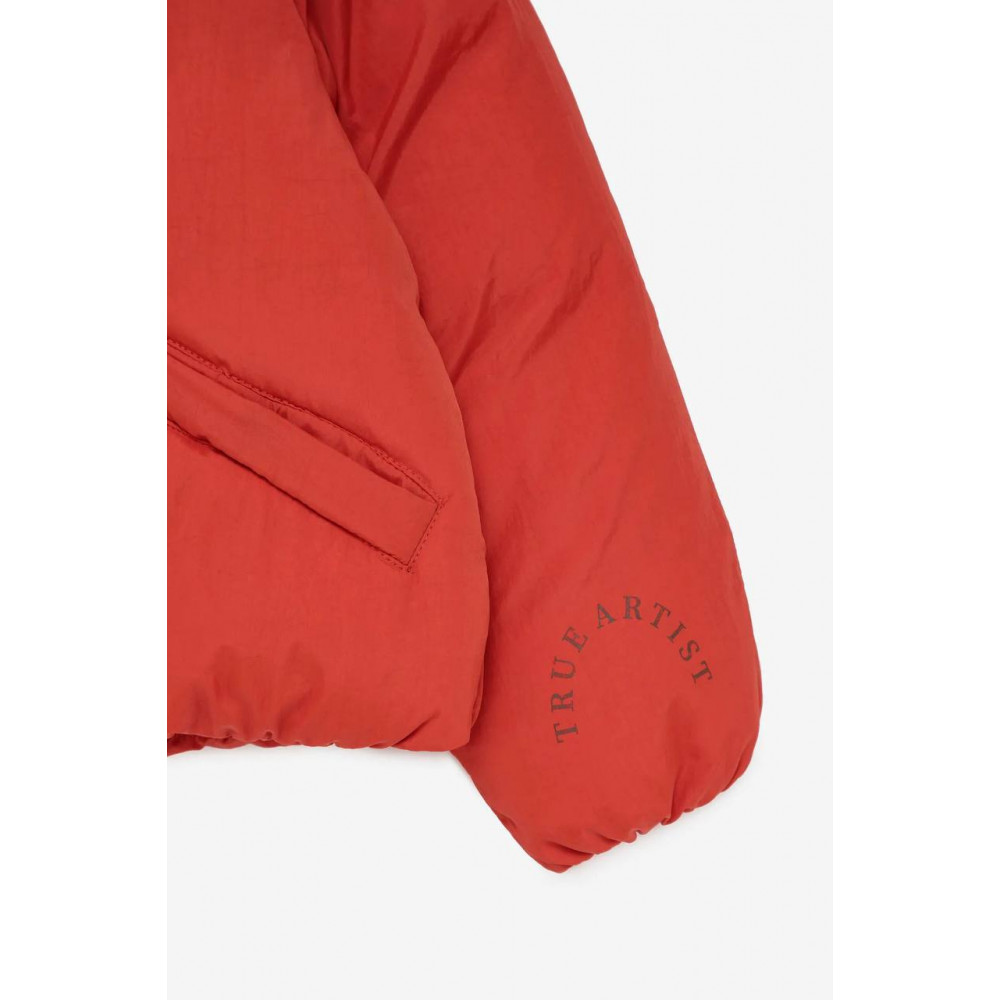 Padded Jacket nº03 in Autumn Fig is made of 100% polyamide on the outside and it is filled with 100% polyester padding. This wrap collar anorak is designed with dropped shoulders, front zipper fastening and welt pockets. It features a True Artist seasonal print at the bottom of the sleeve. Body lining is made of 100% polyamide and sleeve lining is made of 100% polyester. It has a relaxed fit.
