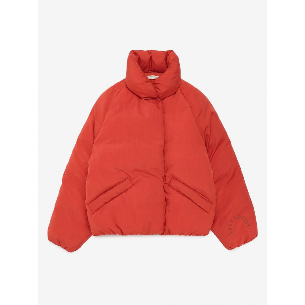 Padded Jacket nº03 in Autumn Fig is made of 100% polyamide on the outside and it is filled with 100% polyester padding. This wrap collar anorak is designed with dropped shoulders, front zipper fastening and welt pockets. It features a True Artist seasonal print at the bottom of the sleeve. Body lining is made of 100% polyamide and sleeve lining is made of 100% polyester. It has a relaxed fit.