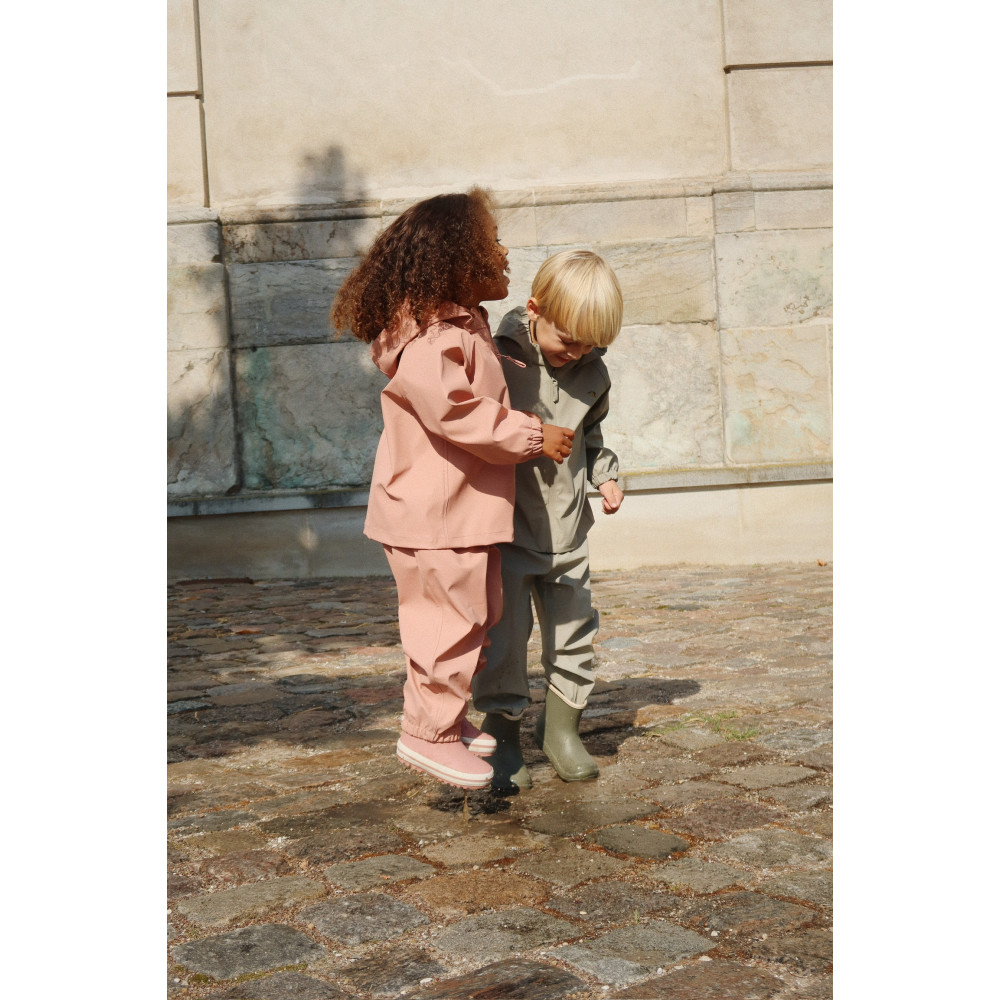 Our Plainy rain set is an everyday favorite in a lightweight quality that is ideal for kindergarten, daycare, and school. Easy and practical to keep in the wardrobe as a backup for whatever weather the day might bring. Wind-resistant and waterproof with a detachable hood. Designed with elastic cuffs at hands and ankles to make sure the rain set stays firmly in place and fits over boots and gloves. Technical details: - Waterproof: 10.000 mm - Taped seams - Wind-resistant