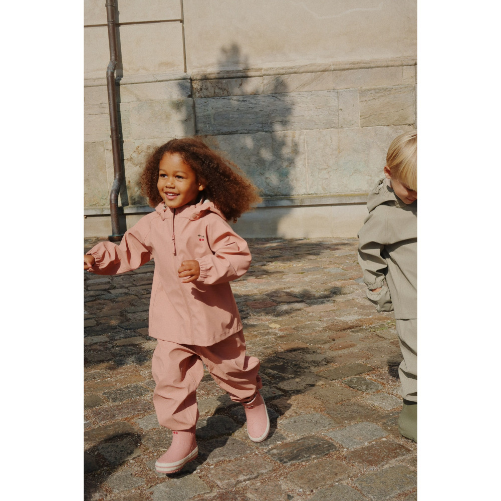 Our Plainy rain set is an everyday favorite in a lightweight quality that is ideal for kindergarten, daycare, and school. Easy and practical to keep in the wardrobe as a backup for whatever weather the day might bring. Wind-resistant and waterproof with a detachable hood. Designed with elastic cuffs at hands and ankles to make sure the rain set stays firmly in place and fits over boots and gloves. Technical details: - Waterproof: 10.000 mm - Taped seams - Wind-resistant