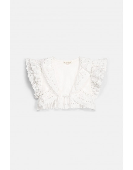 Cotton shrug with eyelet embroidere on the front