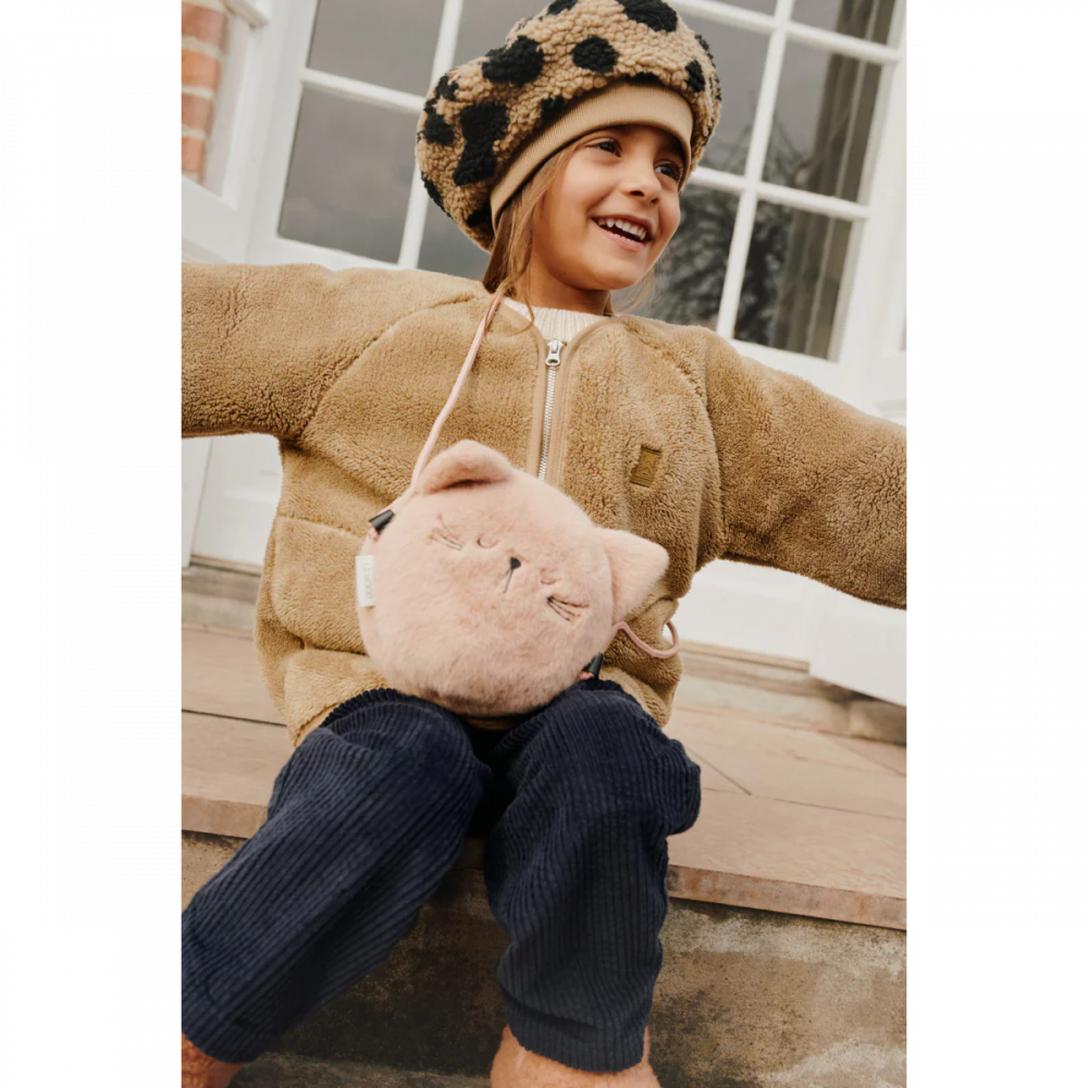 This cute and stylish plush cross-body bag is adorned with playful cat details. Its smaller size makes it easy for little ones to carry, holding the absolute essentials for playdates and outings with friends and family. Soft and round cross-body bag with cute rabbit details Crafted from soft GRS-certified recycled polyester with organic cotton lining Has one main compartment and an adjustable strap Reinforced back panel for durability Easy to bring on all cosy adventures