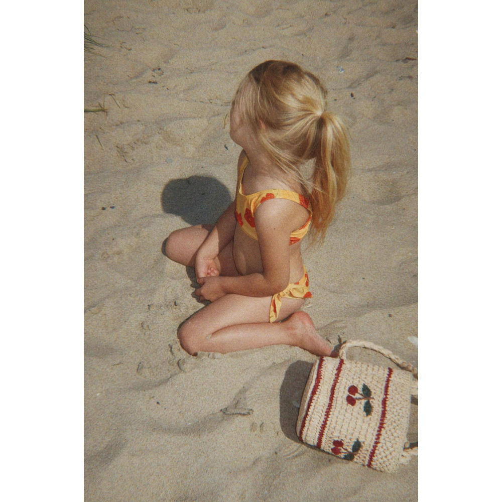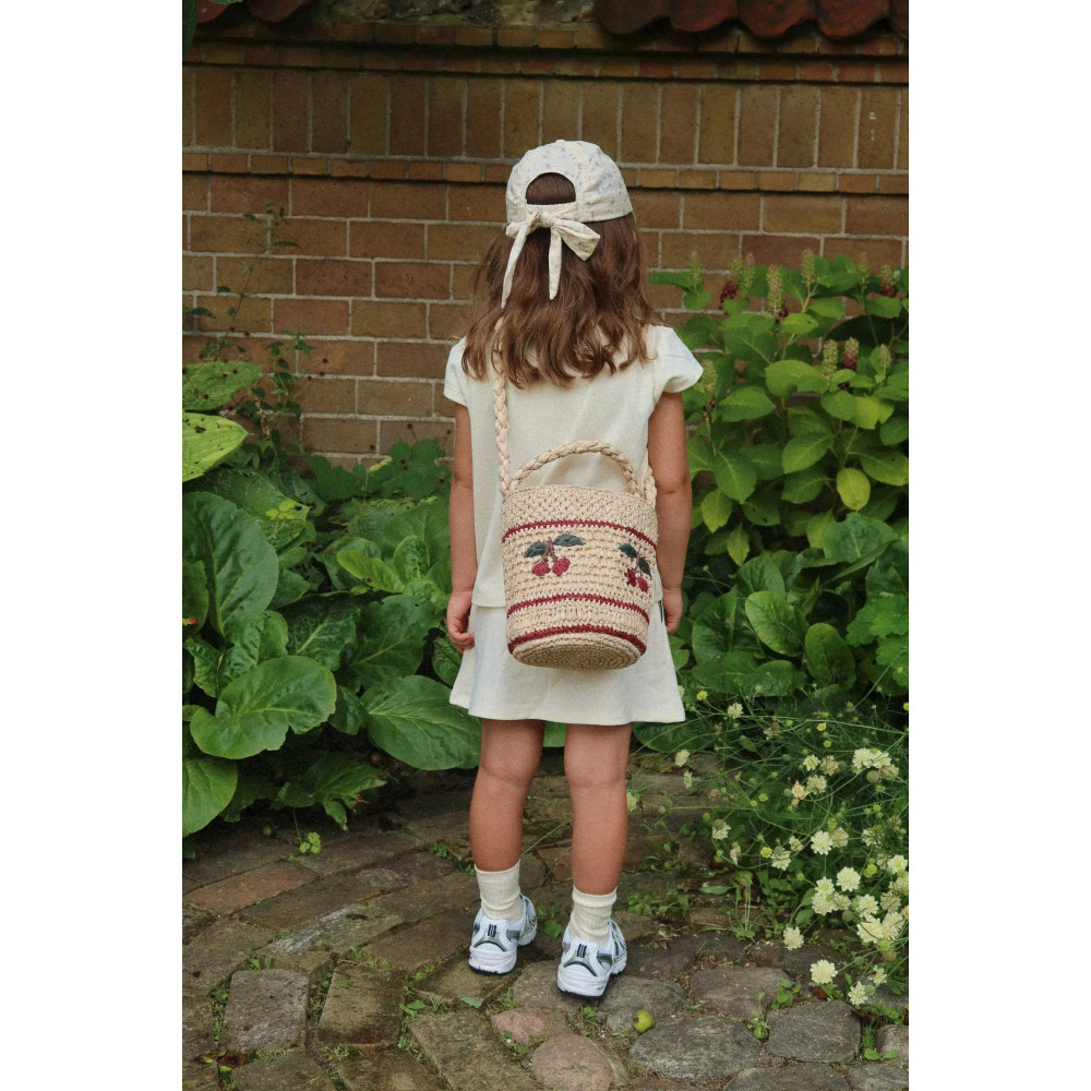 The perfect little straw summer bag made from 100% raffa. Designed with shoulder straps in two different lengths, making it ideal for carrying in multiple ways. Features signature Konges Sløjd cherry detailing in front. Suitable from 3y+