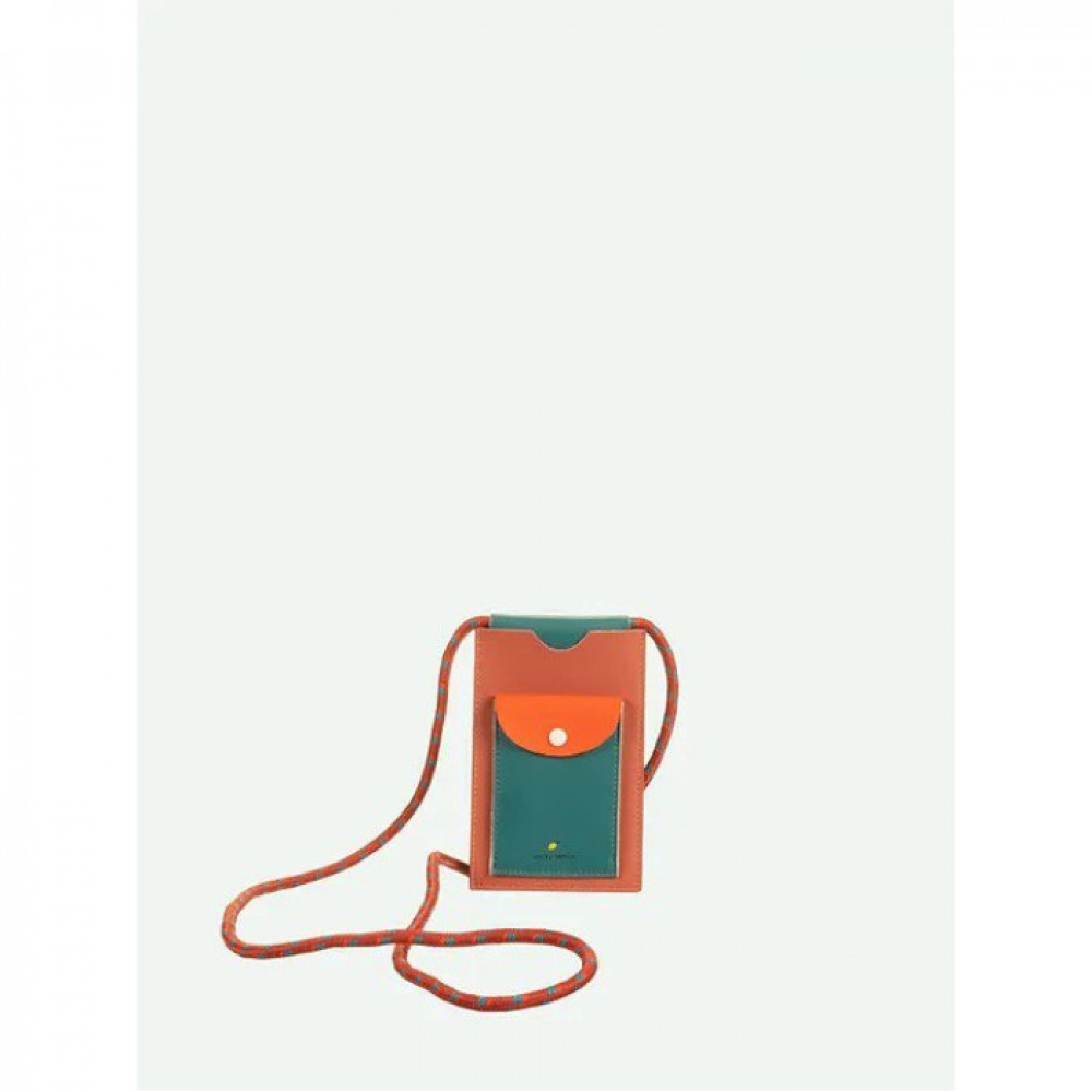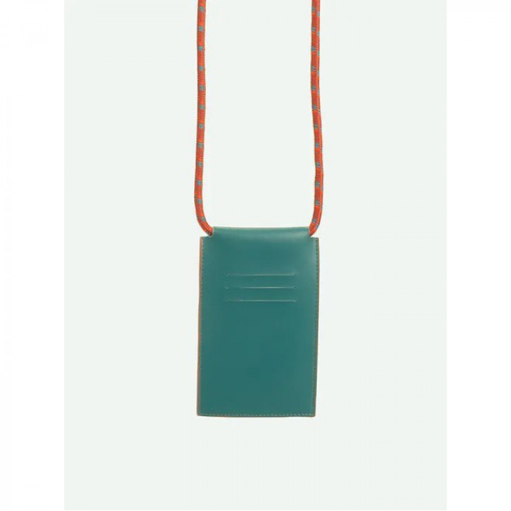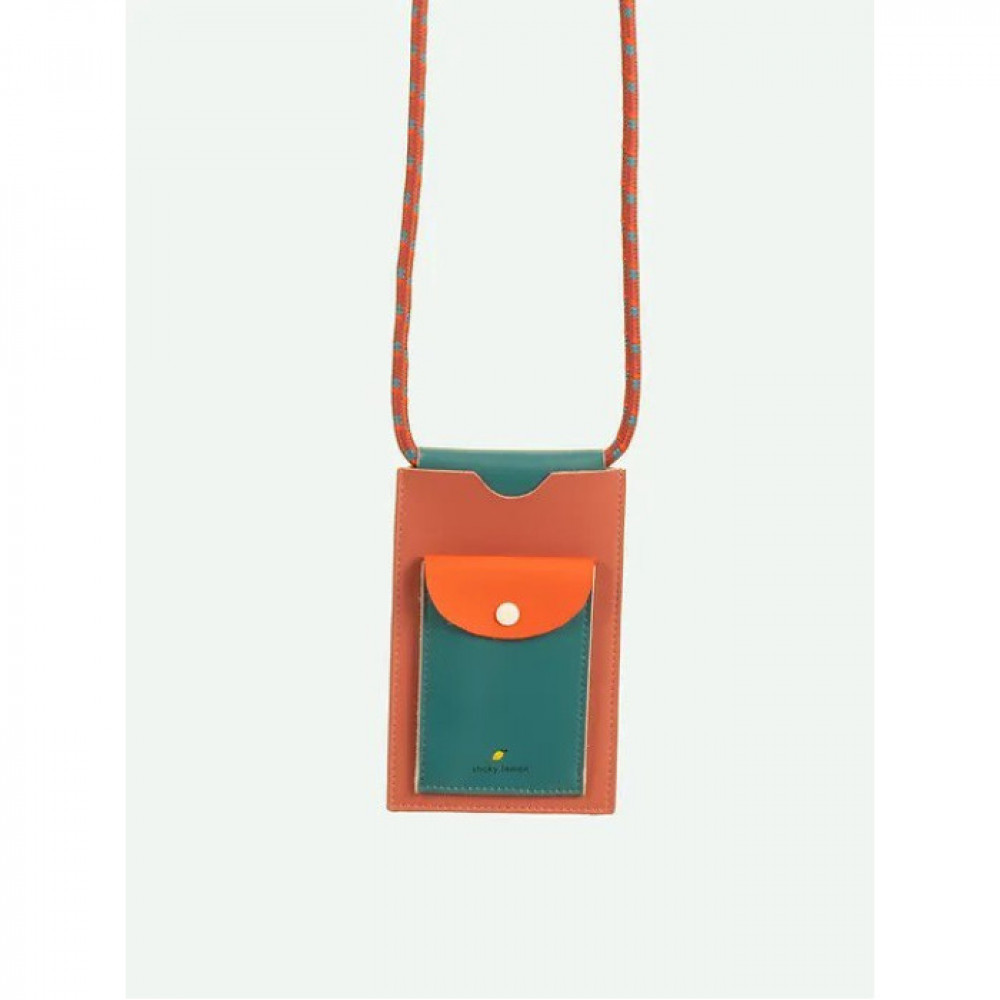 A phone pouch to keep your phone closeby with a coloured cord as the handle. On the back side you'll find some space to store your cards.