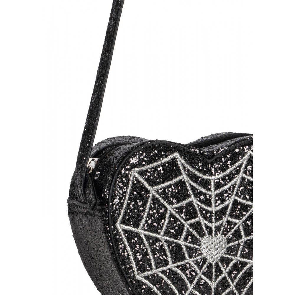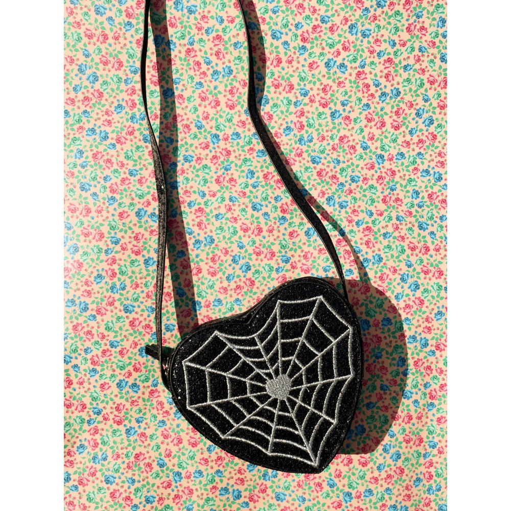 Our sparkly little Tut is a clsssic shoulder bag with a slim shoulder strap. We dressed it up for Halloween with glitter and a spider web in front.