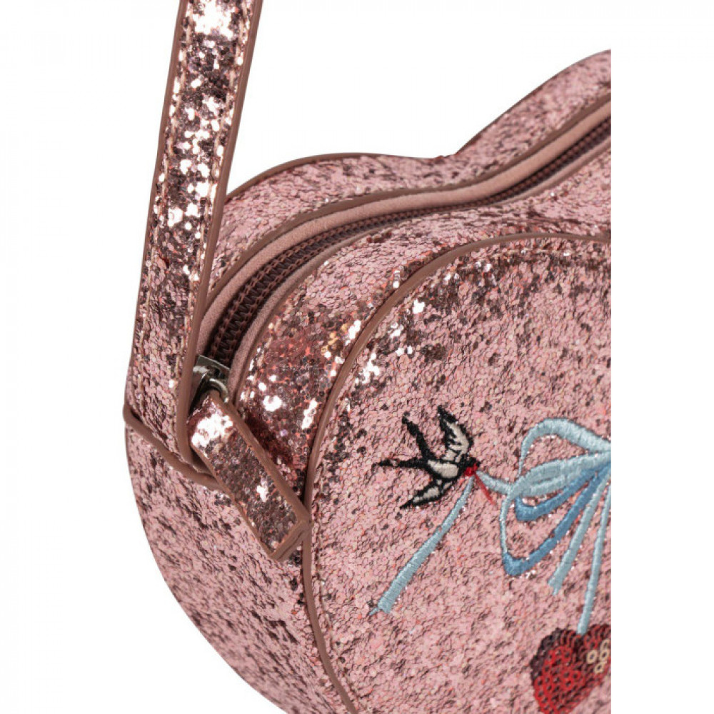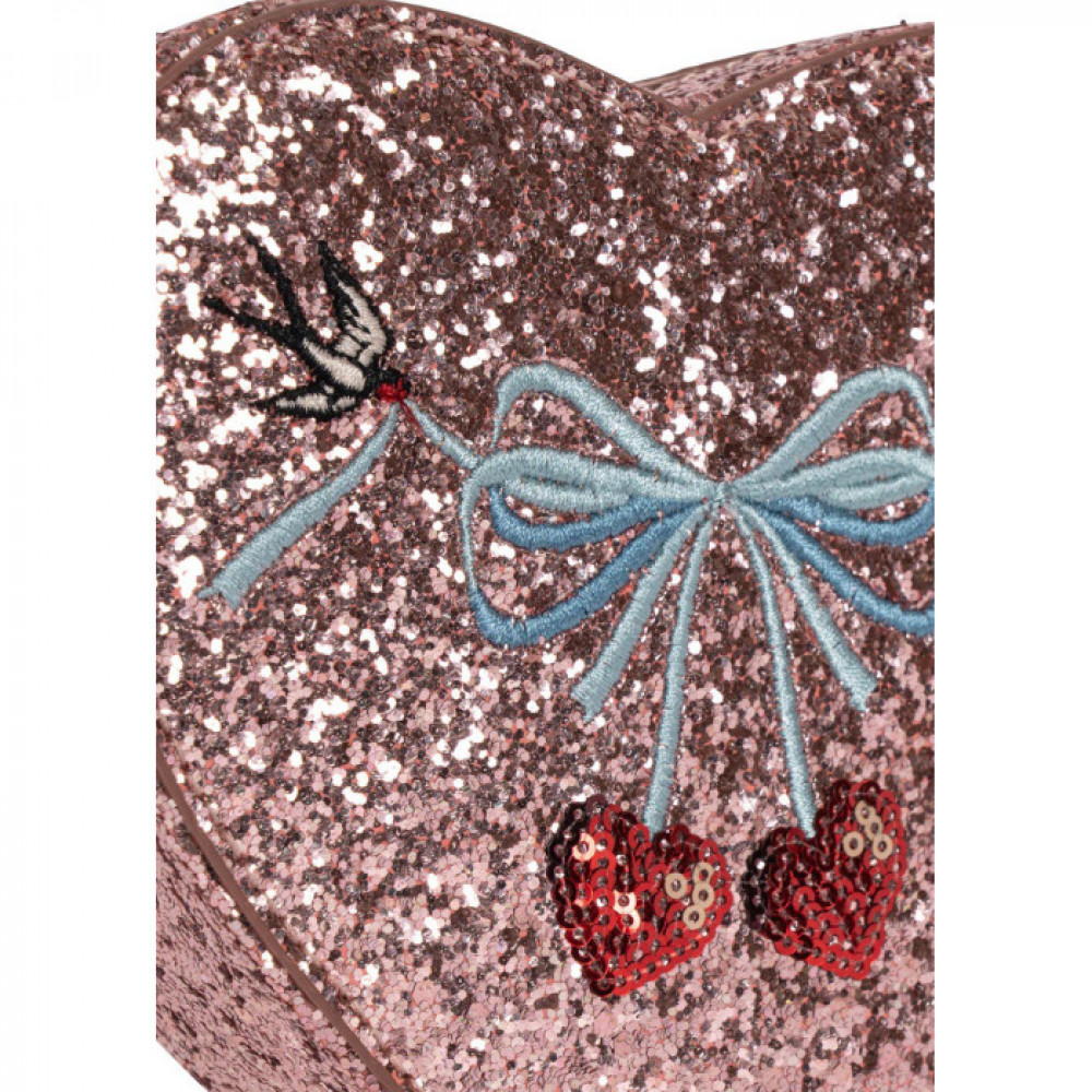 Our favorite glittery shoulder bag in a special Valentine's edition. Designed with a slim shoulder strap and a single inside compartment.
