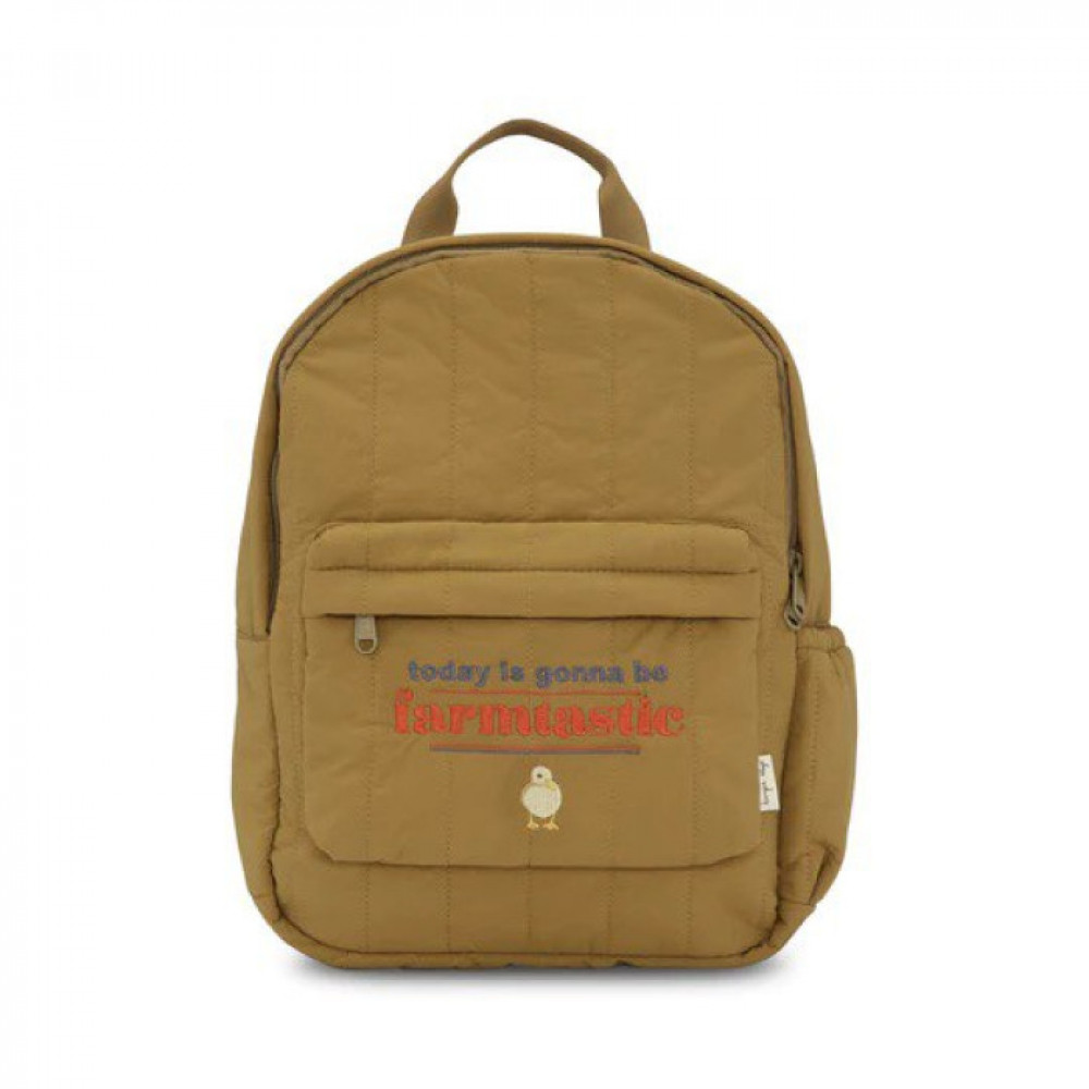 Spacious backpack with an external bottle pocket. A chest strap ensures the backpack is comfortable and supports the back. The backpack is very light, which is an important ergonomic factor. On top, it has a solid loop hanger to hold or hang on a rack. Inside the bag's large compartment, you can write the child’s name. Three small pockets make it easy to keep order. The backpack can be worn all year as it is made to resist erratic weather, dirt repellent and easy to clean. Height: 34CM Width: 25,5CM Depth: 10,5CM
