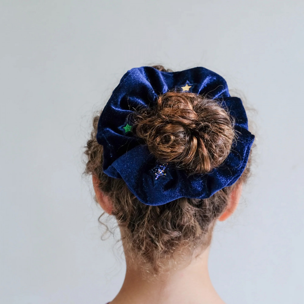 Step out in style with this luxurious velvet scrunchie! Scattered with a beautiful constellation of shimmering stars, this super soft scrunchie will add the finishing touch to any up 'do! 1 in a pack Warning! Not suitable for children under 36 months