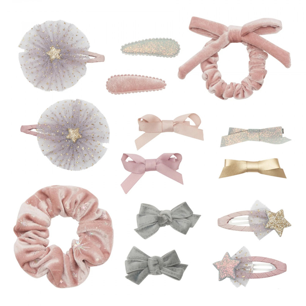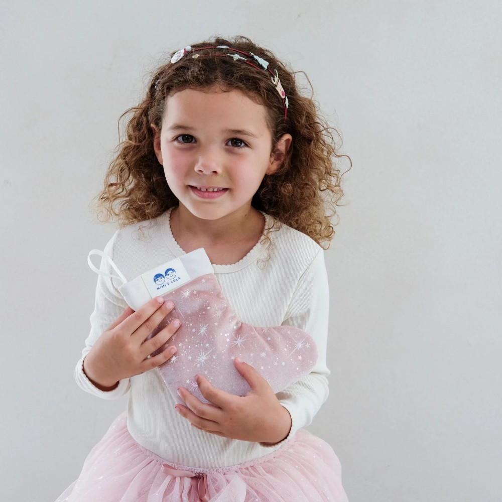 Share some seasonal style this Christmas with our beautiful, soft pink velvet stocking, jam packed full of hair accessories in a wonderfully pretty palette of soft pinks, greys and metallics. Ready made for gifting, this stocking is the perfect combination of pretty and practical! You can even refill it again next year! Stocking crafted from super soft pink velvet fabric scattered with iridescent stars Stocking contains 14 accessories including two velvet scrunchies plus 12 different hair clips in a range of soft pink, grey, glitter and metallic shades Accessories are all individually wrapped in tissue paper ready for gifting Hanging loop Stocking measures approx 19cm x 17cm at widest Warning! Not suitable for children under 36 months