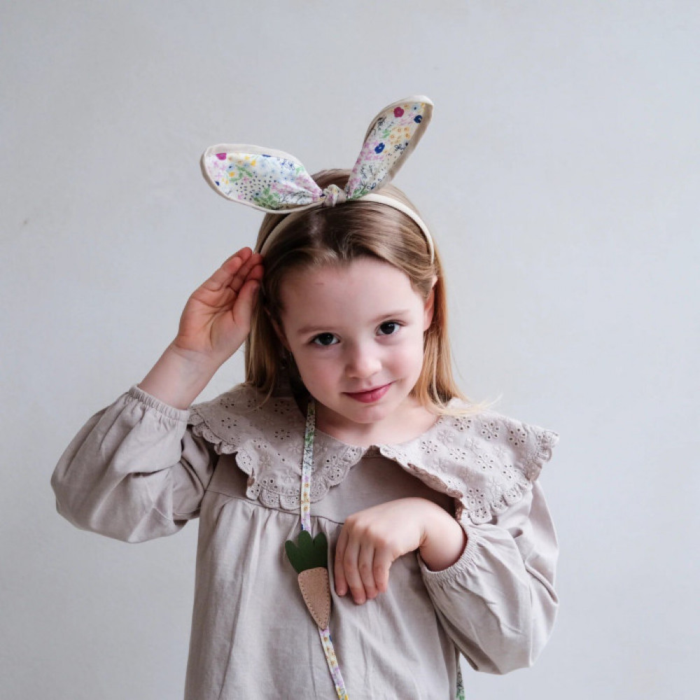 A delightful pair of pretty floral print ears for your special some-bunny this Easter! What a wonderful gift these would make! Alice band to fit ages 3-10 years Linen style fabric wrapped alice band lined with floral print fabric Bendable wire inside the ears means these can be worn as high or as low as you like Warning! Not suitable for children under 36 months