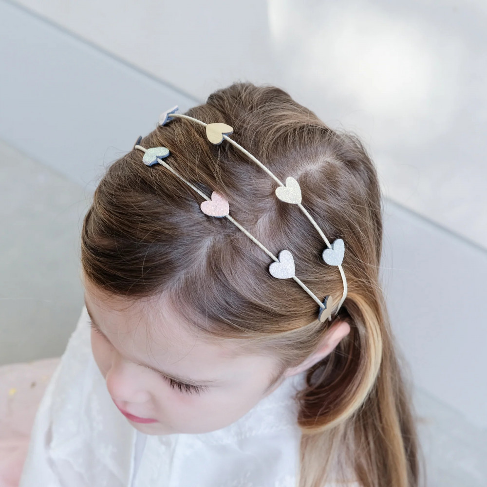 Two gold ribbon wrapped rows adorned with a pretty mix of ten metallic and twinkling glitter padded stars.