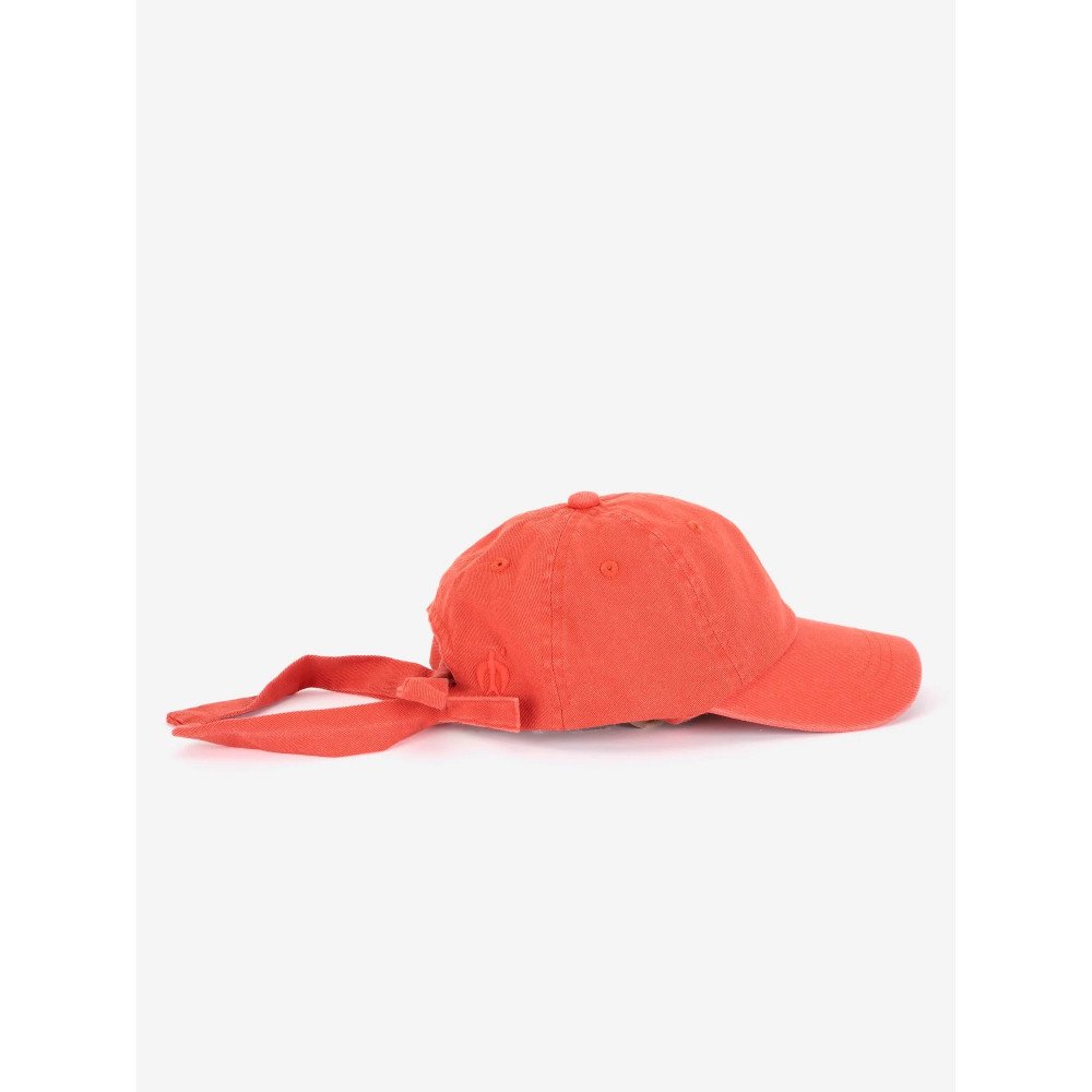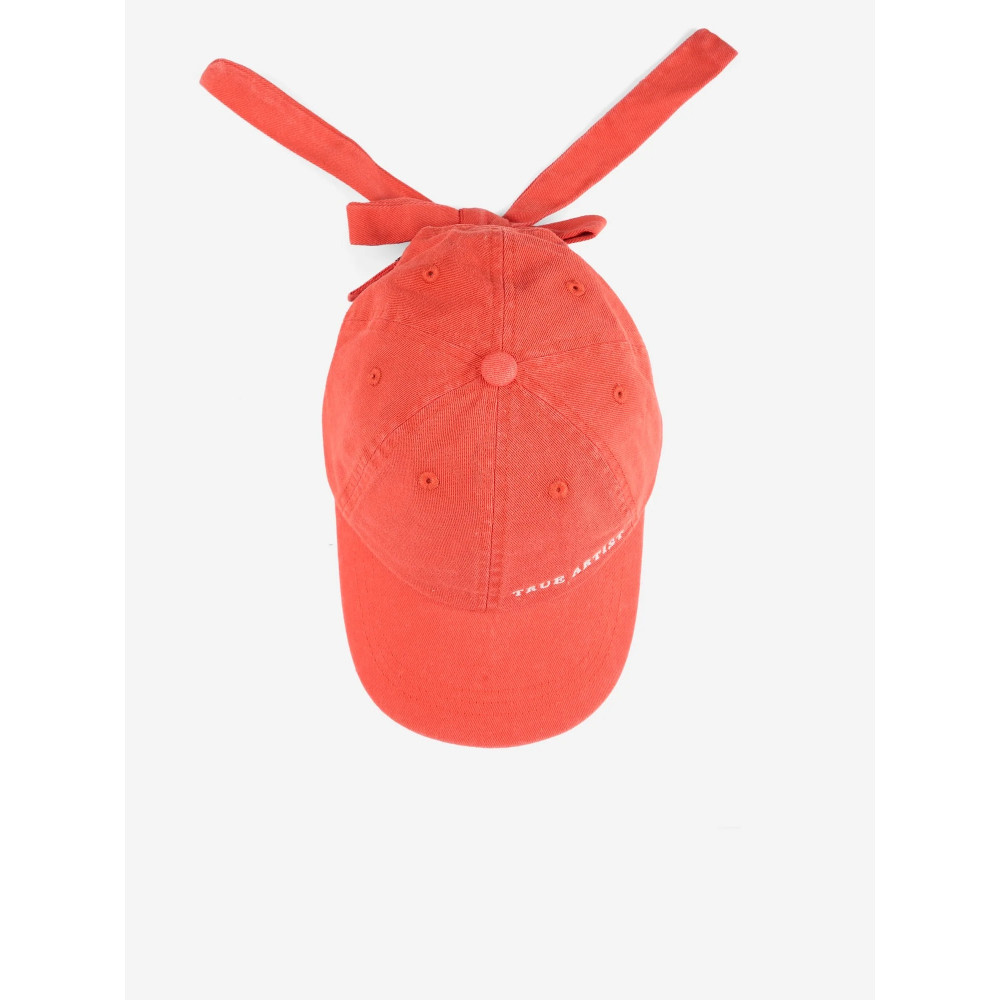 Cap nº04 in Mandarin Red is made of 100% recycled cotton. This cap features our TRUE ARTIST logo embroidered on the front and a knot detail at the back.