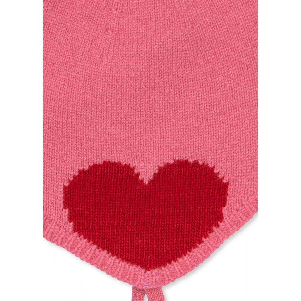 Knitted helmet in a warm wool quality. Fasten with strings under the chin for a snug fit.