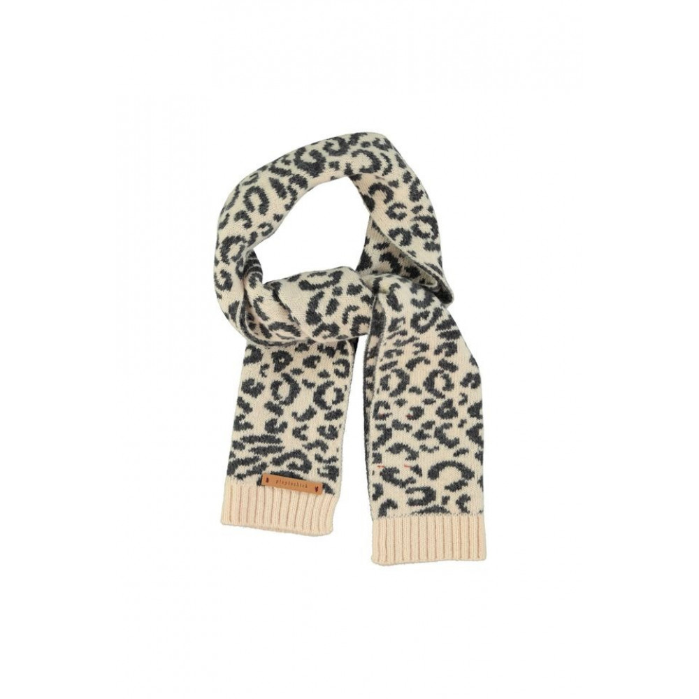 Jacquard knitted scarf with animal print, detailed with logo leather label. Made in Portugal