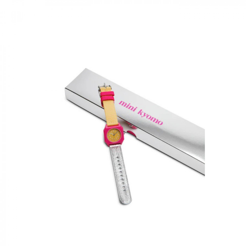 Fun and stylish, the Disco watch has been designed to be the perfect accessory for your child. It is equipped with a Japanese movement and a mineral glass. In order to support adventure and play, it is also waterproof. The watch has clearly readable dials with strong color contrast to make learning to read time an easy task. All hours and five-minute steps are written out, the minutes in-between are marked with small dots. Dimensions : case 32mmx 31mm - 5mm thickness / strap 18 mm width.