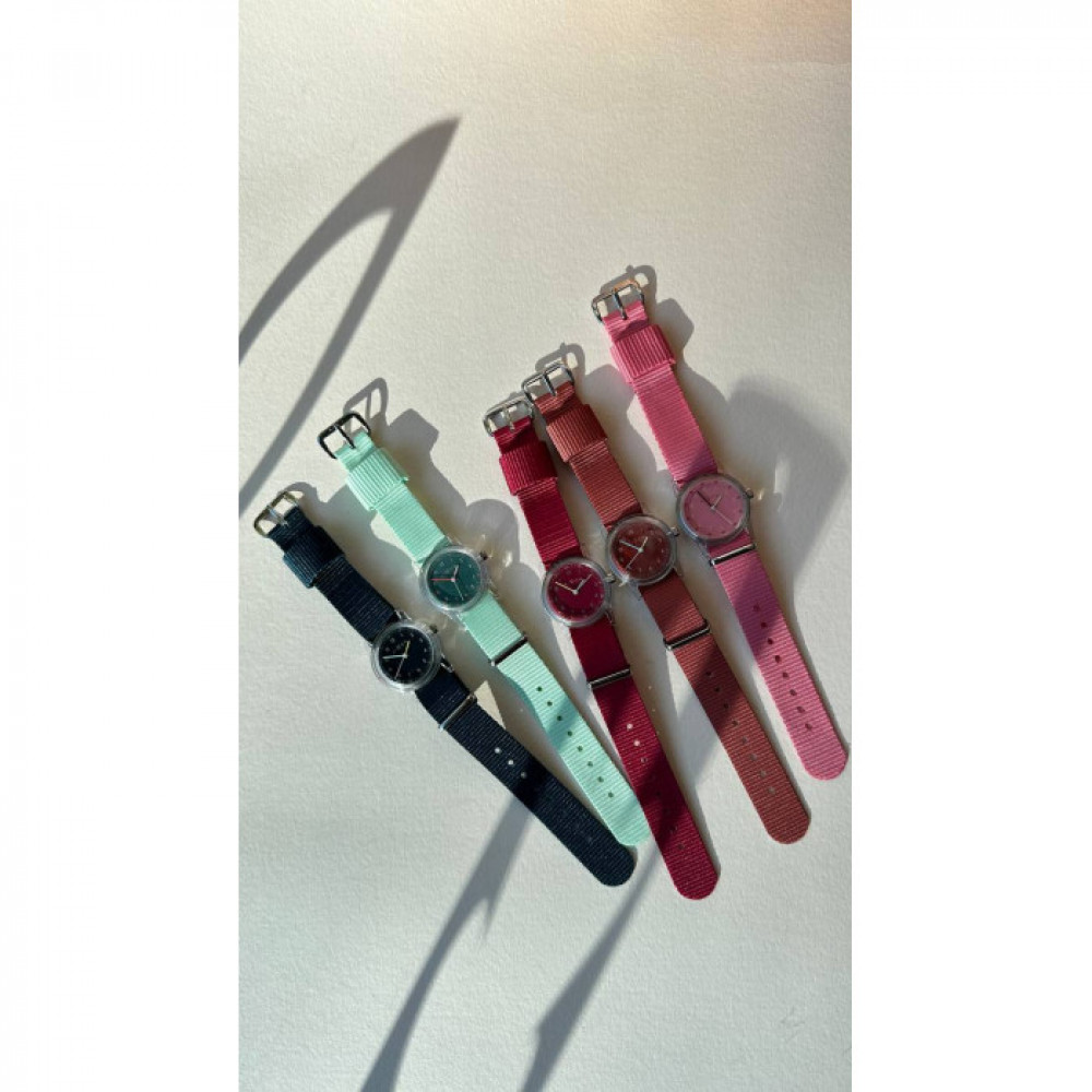 With the Et'Tic collection, we wanted to make our Millow watches evolve towards a more sustainable and responsible production. Its transparent case with its pop colored dial is waterproof and ultra light (the case weighs is only 3 grams). Its design also comes with the playful design to help reading time easily. Its colored-coordinated hands and digits make it easier to learn to tell the time.
