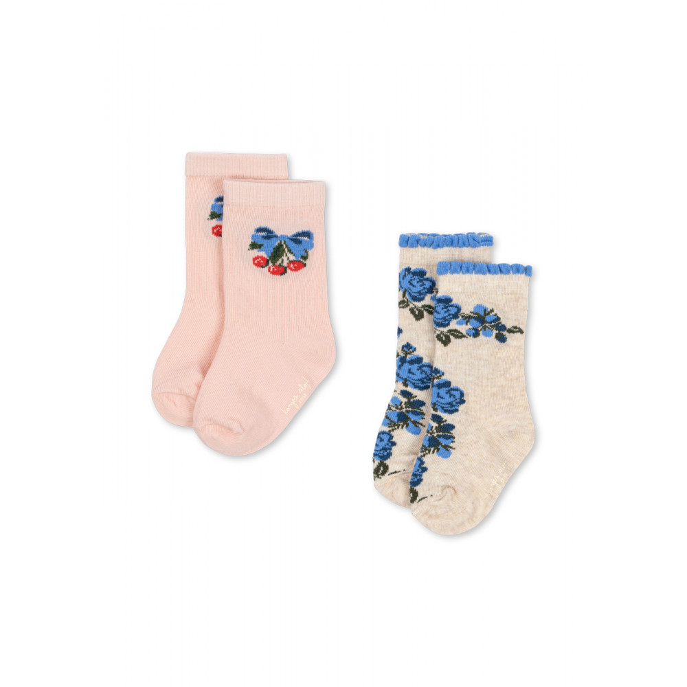 2-pack socks made in a soft cotton and elastane blend for comfy everyday wear. Designed with reinforced heel and toe for an optimized fit, and decorated with a jacquard woven cherry and flower print.