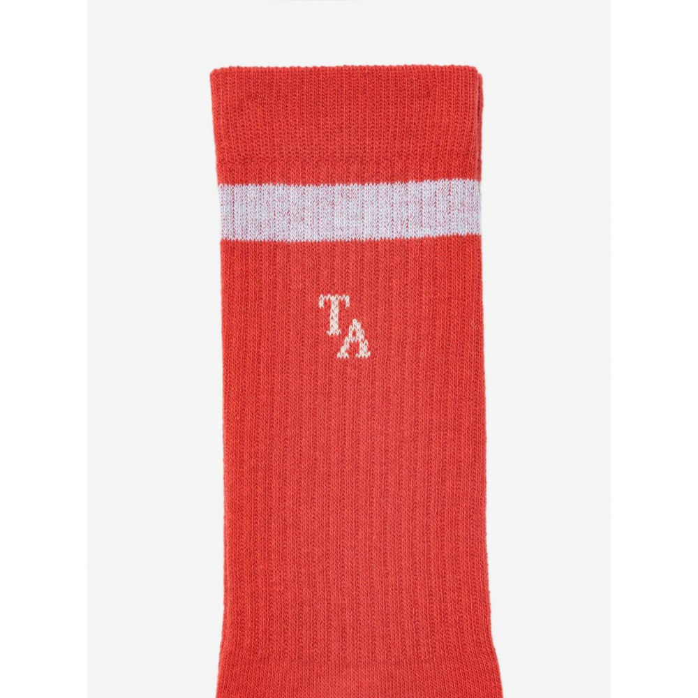 Socks nº02 in Autumn Fig are made of 74% cotton, 22% polyamide and 4% elastane. These classic crew-length socks feature contrast color details for a sporty, retro look. They have a TA embroidery in contrast color on the outer side of each sock and a TRUE ARTIST knitted on the sole adding a subtle brand detail. Made in Spain.