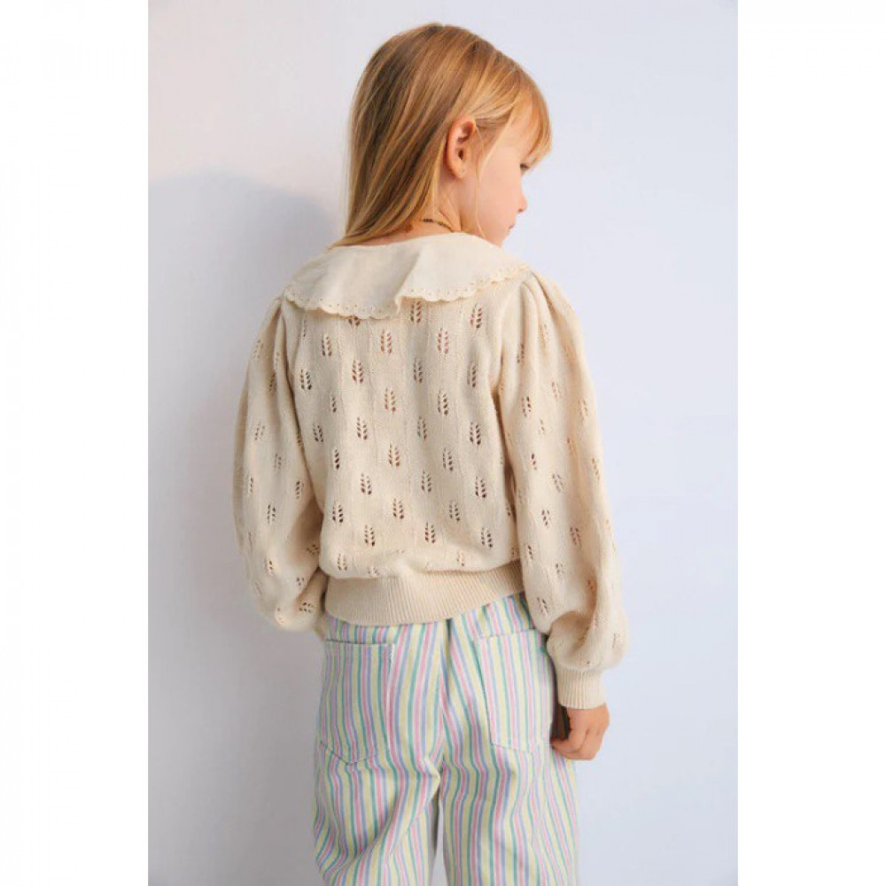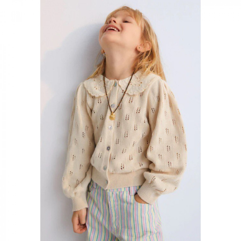 This structured knit cardigan exudes sophistication with its mother-of-pearl buttons, ribbed cuffs, and hem. The delicate contrast lace collar adds a feminine touch, making it a versatile and stylish addition to your wardrobe. Pair it with the matching bloomer for a coordinated, chic look. Machine wash 30º/do not bleach/do not tumble dry/iron low temperature/do not dry clean.