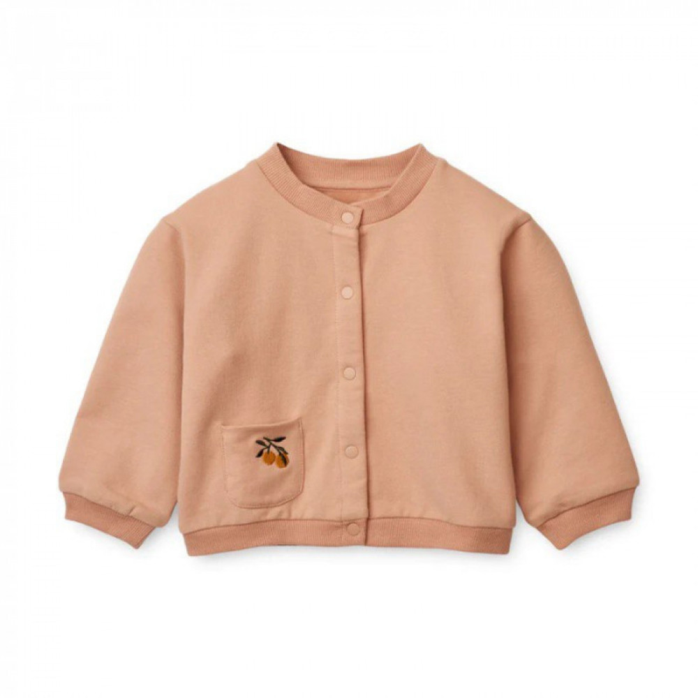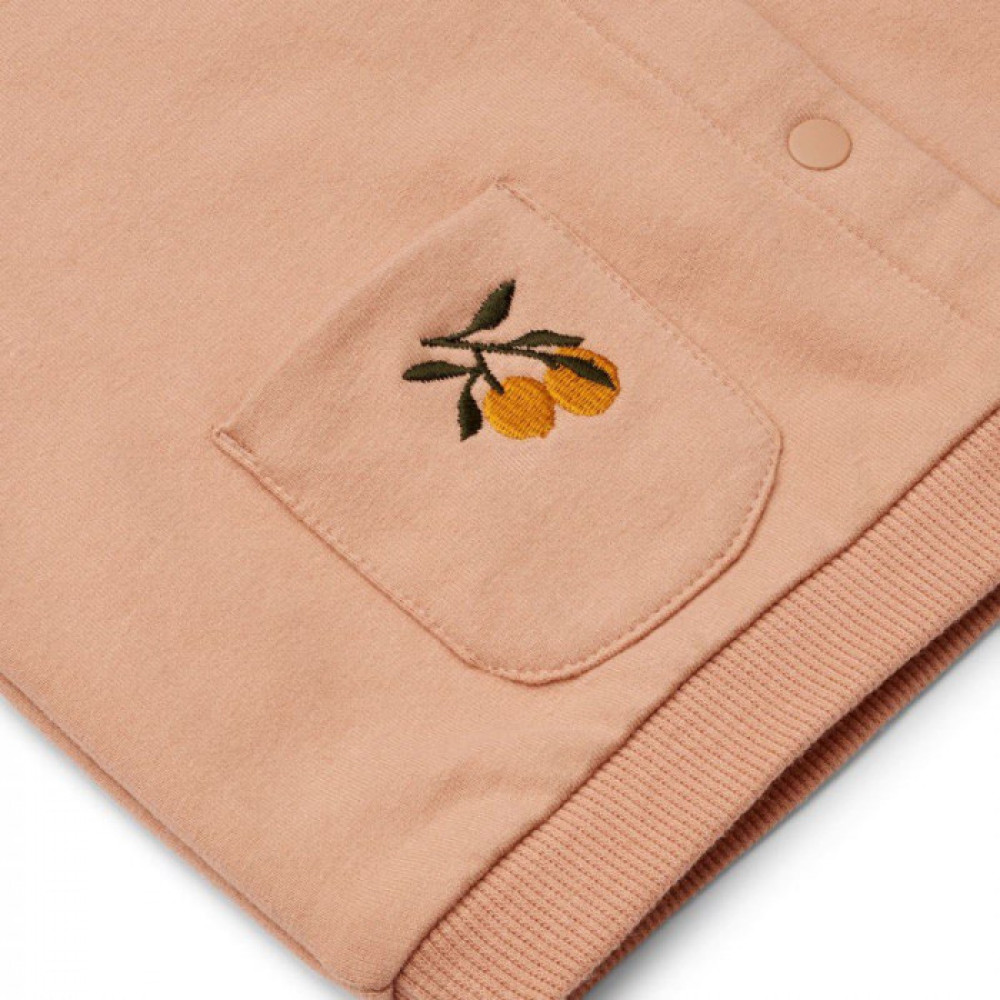 The Silvio cardigan features a brushed terry fabric for a super-soft feel, a loose fit for easy movement and breathability, a front opening with snaps for adjustable closure and ribbed cuffs for a snug fit. It also has a small patch pocket with embroidery for a unique touch. GOTS-certified.