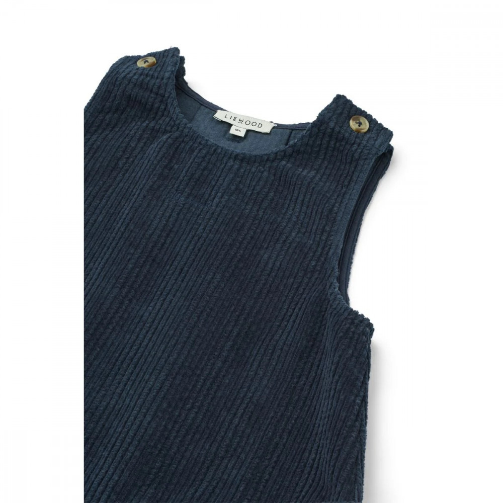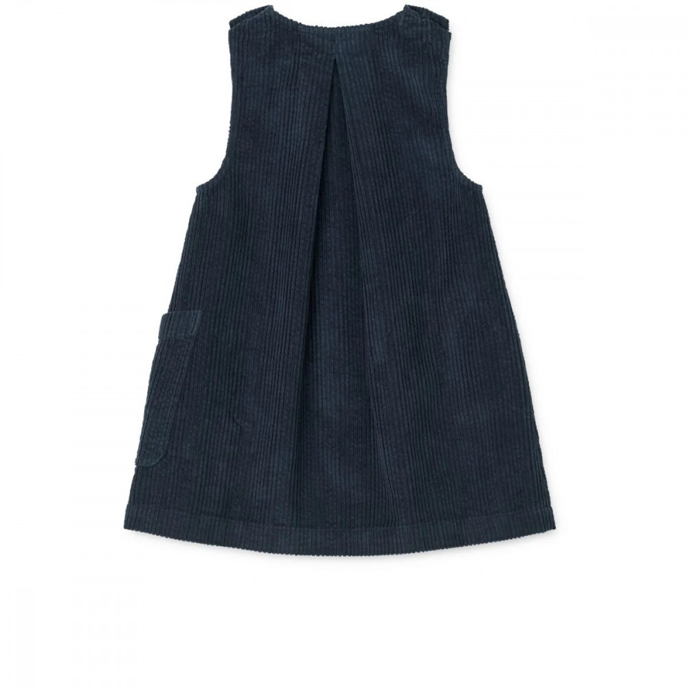 This corduroy spencer dress blends timeless charm with everyday comfort, featuring shoulder buttons, a side pocket, and a refined back pleat. Made from soft, richly textured organic cotton, it is a versatile wardrobe favourite. Corduroy spencer dress with buttons on both shoulders Made from 100% GOTS-certified organic cotton Soft and richly textured Pocket at the side Pleat in the back for extra refinement