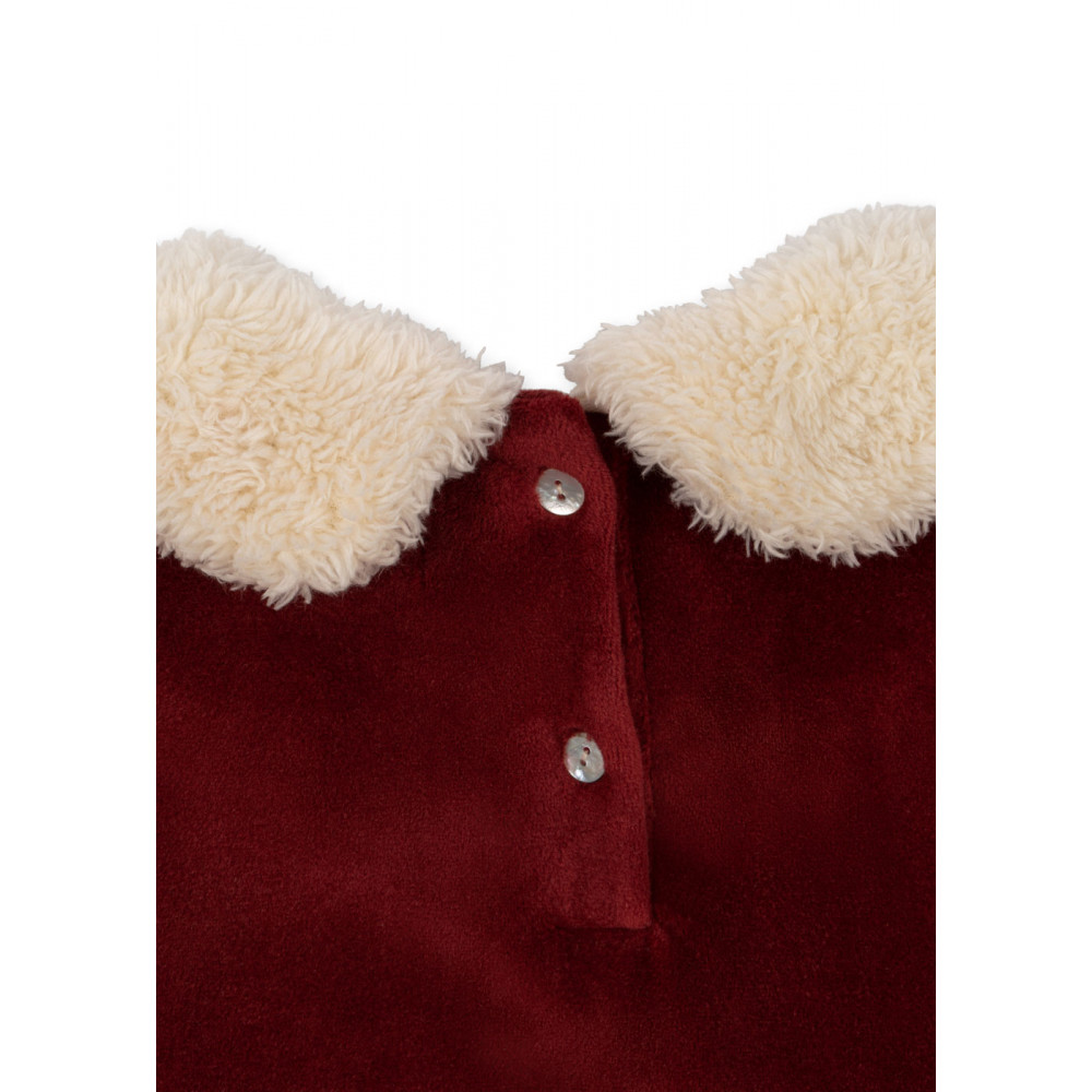 Classic Christmas dress made in soft red velvet with white contrast fabric. This product contains at least 80% GRS certified polyester, certified by CU 1094701