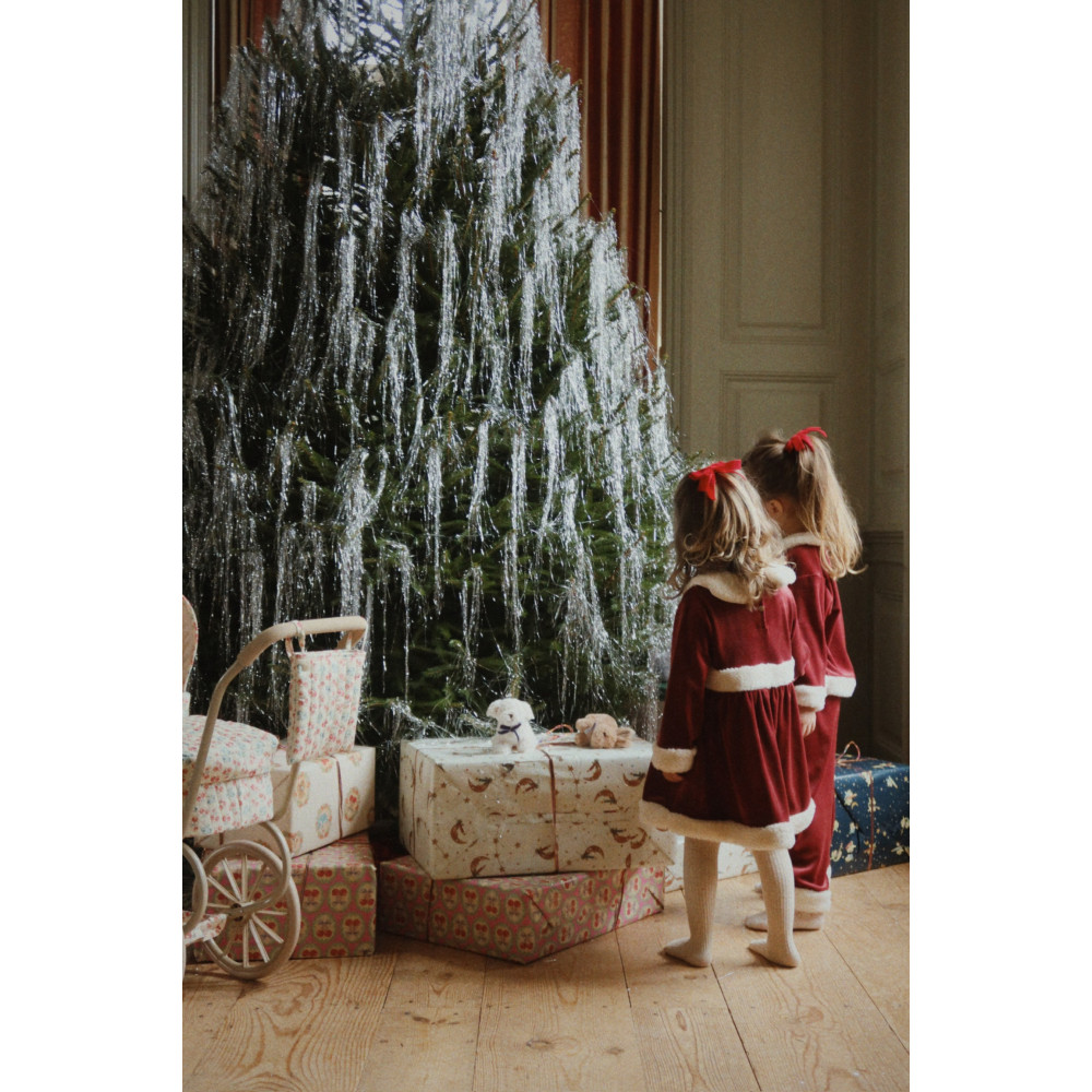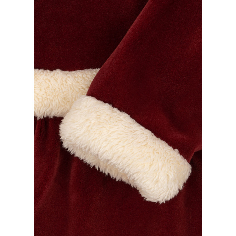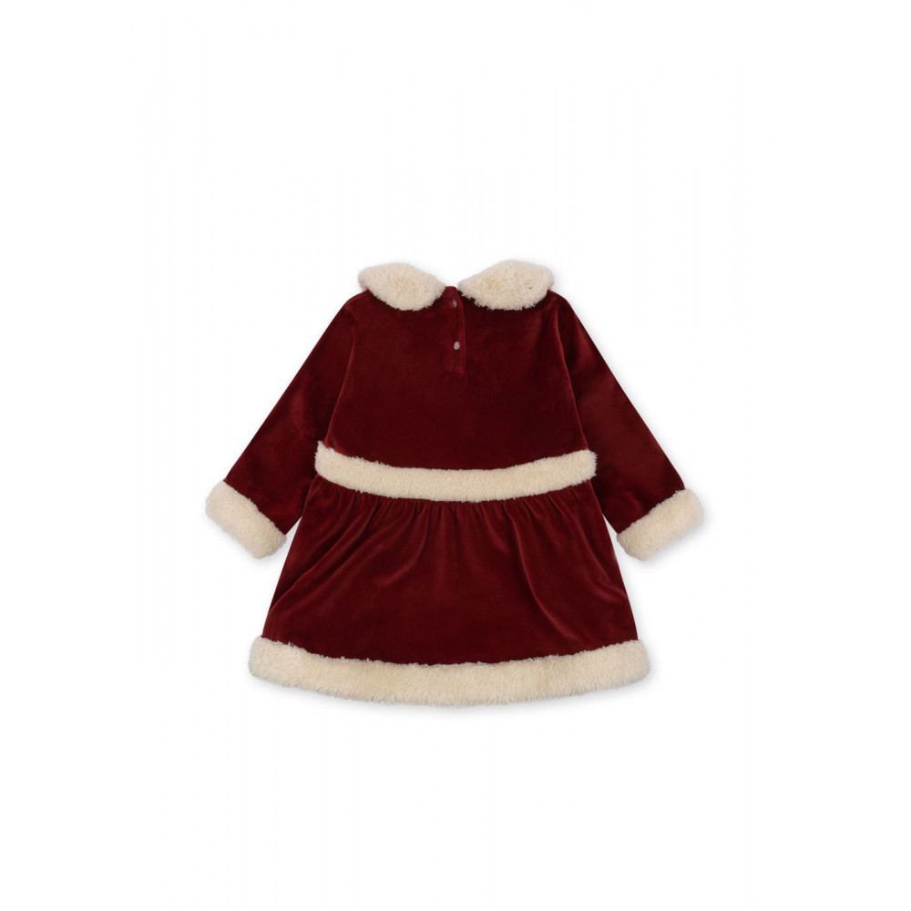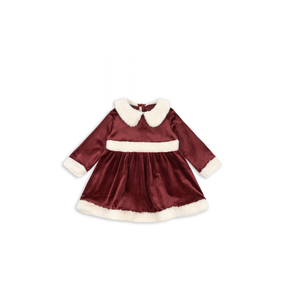 Classic Christmas dress made in soft red velvet with white contrast fabric. This product contains at least 80% GRS certified polyester, certified by CU 1094701