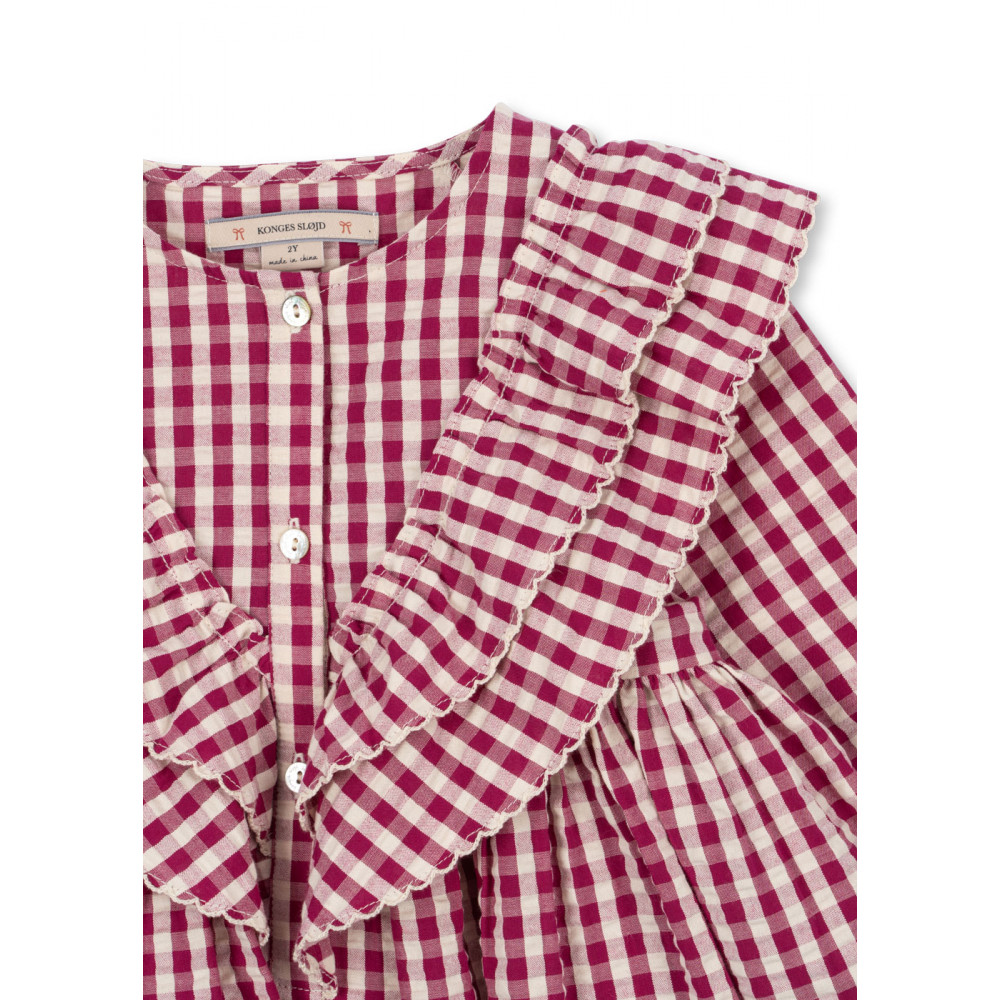 Soft and wearable dress with frill details in front and decorative pleats at the cuffs.