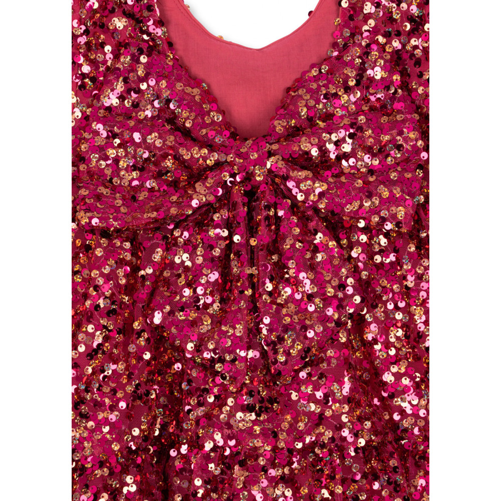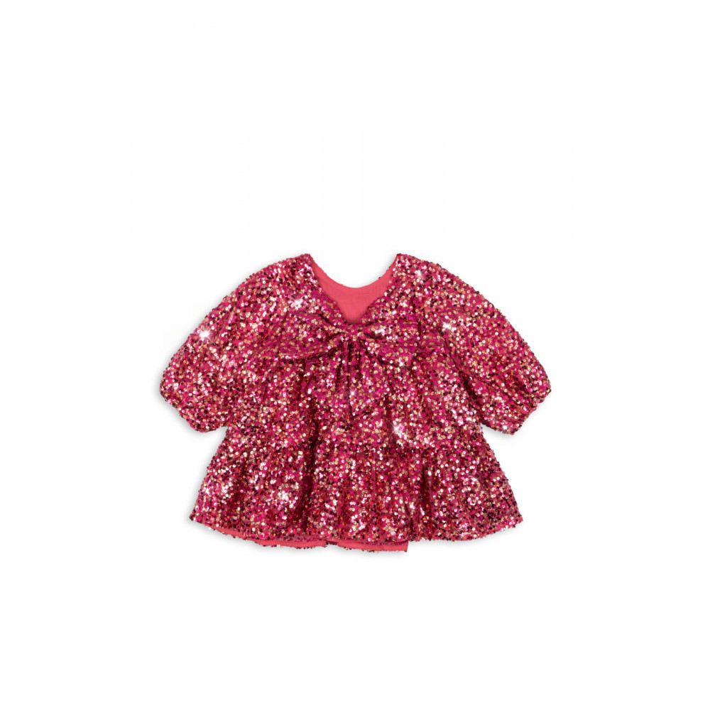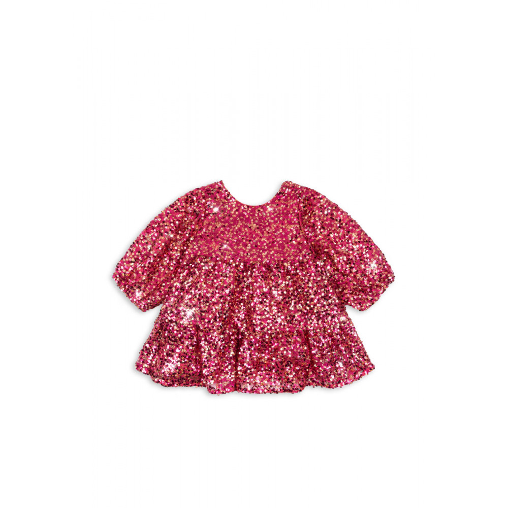 The perfect showstopper: our Lila dress is covered in sparkly sequins and features decorative balloon sleeves and a flared skirt with a soft cotton lining.