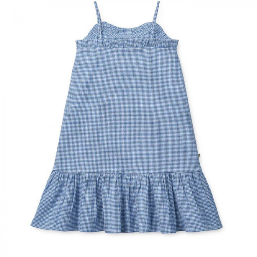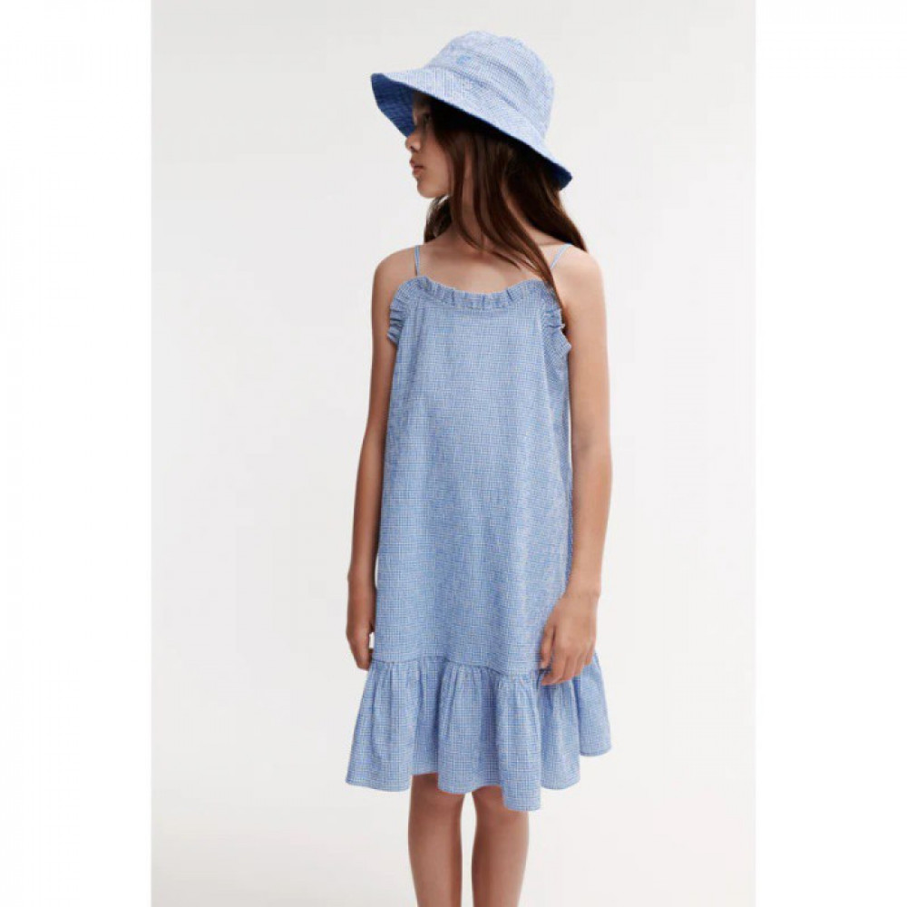 In a finely checkered seersucker fabric, the Sophia dress is ideal to bring along on family vacations. The thin straps and frill details make it fun and breathable for sunny days. Match with a bucket hat and the Morris sandals for a cool look.
