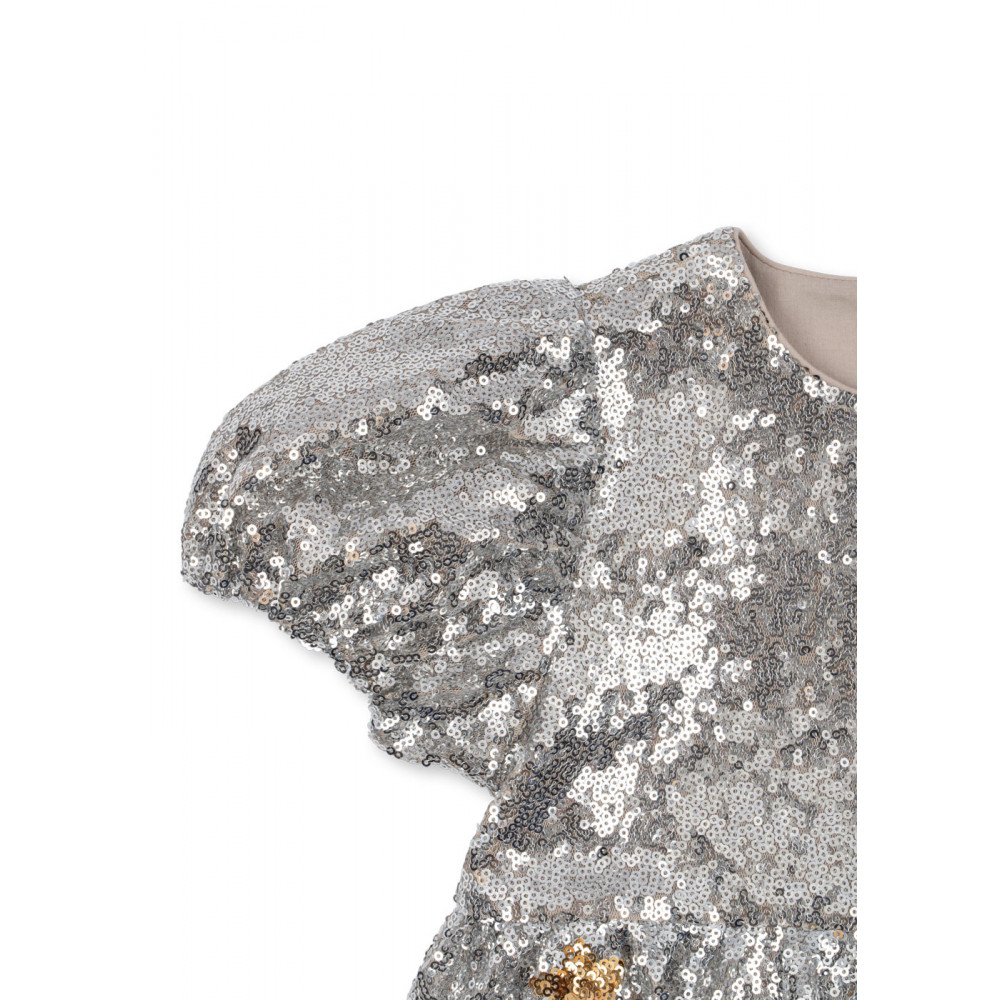 The Starla dress is a true showstopper: dressed in sparkly sequins, and features an accentuated waistline, round neck, and flared skirt.