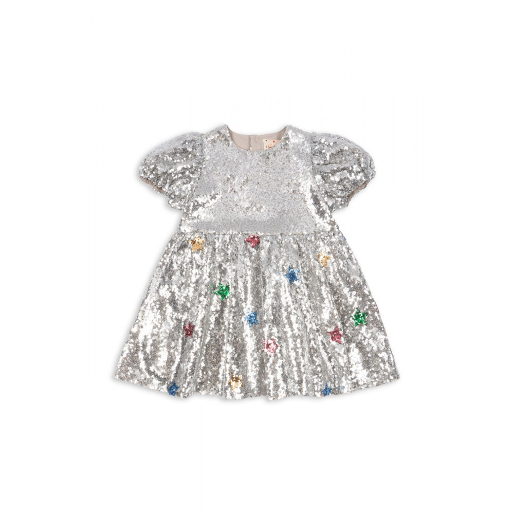 The Starla dress is a true showstopper: dressed in sparkly sequins, and features an accentuated waistline, round neck, and flared skirt.